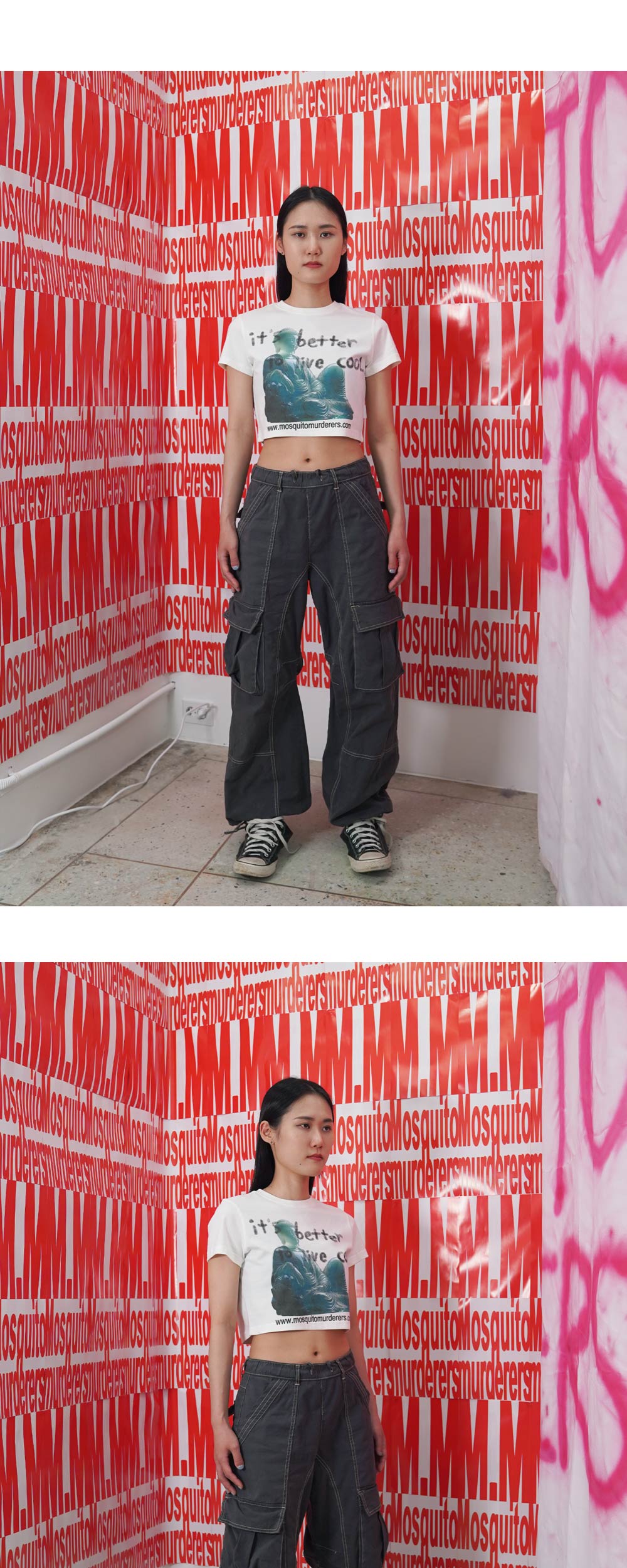 167cm(5’5”) / 51kg(114lb) - 비침없이 부드러우며 구김에 강한 100% 면 텍스처 - 워싱 가공을 거쳐 오랜시간 착용 및 세탁시에도 옷의 변형을 최소화 - 벗겨지거나 바래지 않는 선명한 프린팅 Mosquito murderers의 모든 의류는 한땀 한땀 사람의 손으로 탄생됩니다. 세탁시 케어라벨을 확인해 주시고, 프린팅의 손상을 최소화 하기 위해 옷을 뒤집어 세탁하는 것을 권장합니다.