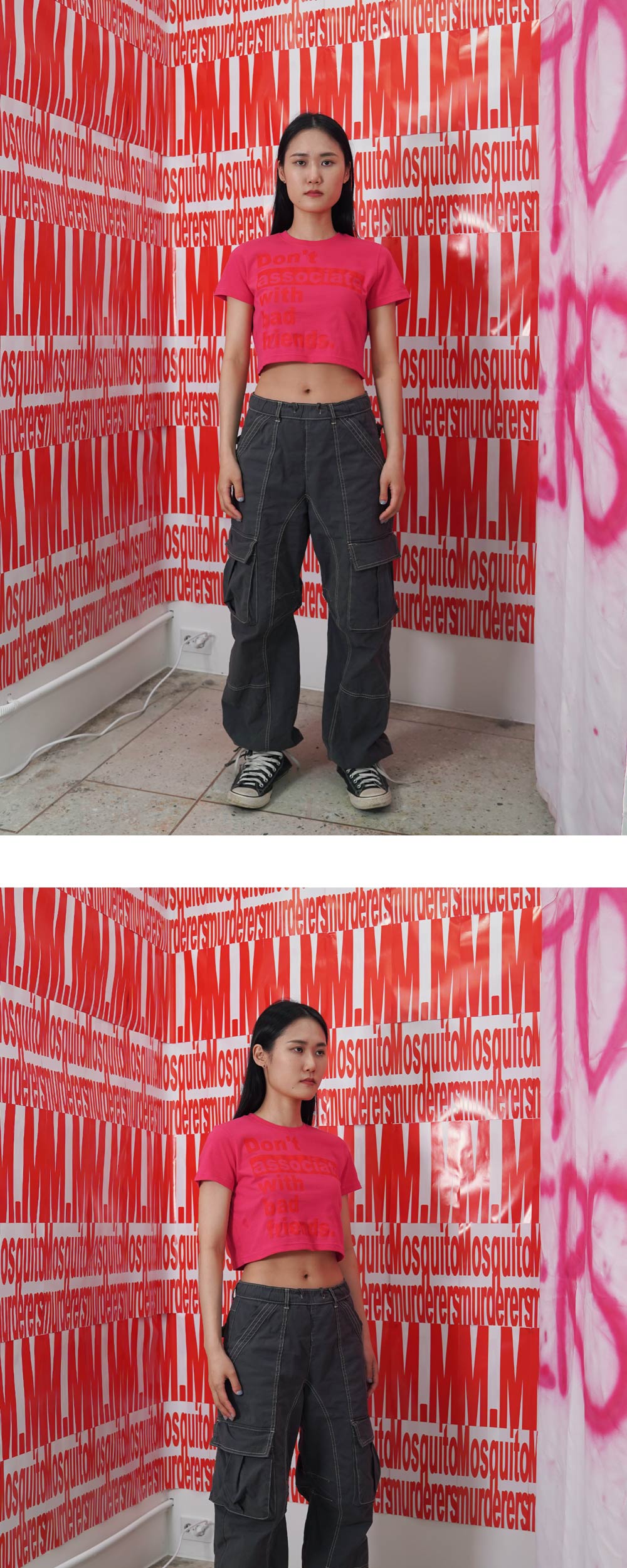 모스키토 머더러스 돈 어소시에이트 위드 배드 프렌즈 크롭 티셔츠 핑크