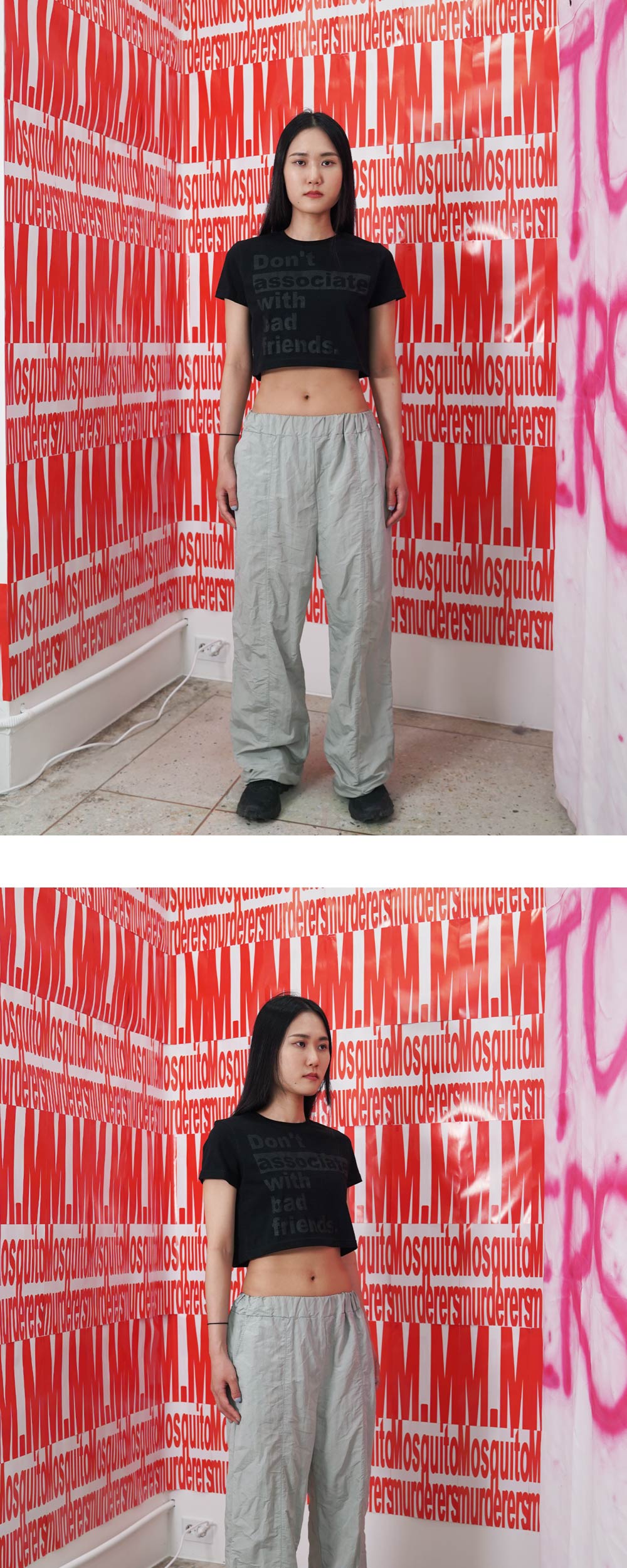 모스키토 머더러스 돈 어소시에이트 위드 배드 프렌즈 크롭 티셔츠 블랙
