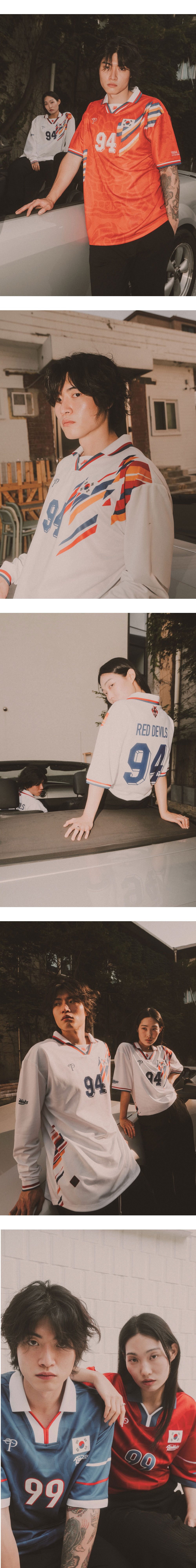 오버더피치가 또한번 대한민국 축구대표팀의 지지자, 붉은악마와 협업 컬렉션을 발매합니다. 이번 붉은악마 1994와 1999 컬렉션은 6월 평가전을 시작으로 앞으로 있을 대회들을 위해 대한민국 축구 국가대표팀을 온 마음으로 응원할 축구 팬들의 뜨거운 열정을 위해 준비했습니다. 이번 컬렉션은 각해의 명 경기 당시 선수들 입었던 저지를 재해석하여 자랑스러운 12번째 태극전사, 붉은 악마의 정체성을 저지 곳곳에 담았습니다. 붉은 악마의 상징이라고 할 수 있는 '치우천왕'의 그래픽을 가미해 디자인하였고, 여러 컬러감을 강조했습니다. 붉은악마 1994와 1999 컬렉션은 오버더피치 온라인, 오프라인 매장에서 만나보실 수 있습니다. 오는 6월부터 펼쳐질 축구 국가대표의 경기들을 오버더피치와 함께 즐겨주시길 바랍니다.