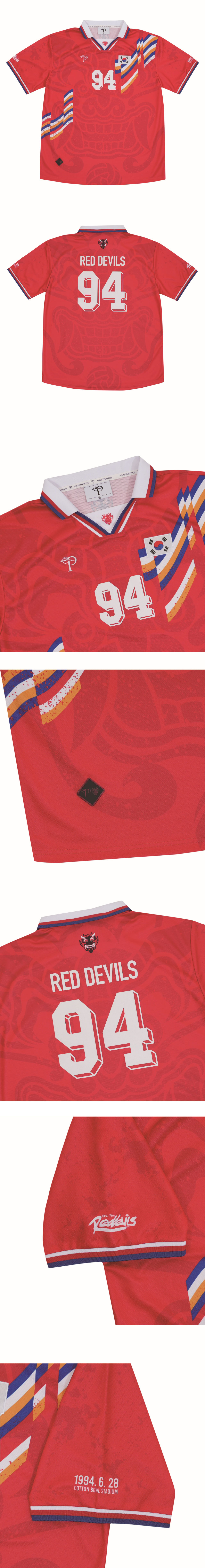 오버더피치가 또한번 대한민국 축구대표팀의 지지자, 붉은악마와 협업 컬렉션을 발매합니다. 이번 붉은악마 1994와 1999 컬렉션은 6월 평가전을 시작으로 앞으로 있을 대회들을 위해 대한민국 축구 국가대표팀을 온 마음으로 응원할 축구 팬들의 뜨거운 열정을 위해 준비했습니다. 이번 컬렉션은 각해의 명 경기 당시 선수들 입었던 저지를 재해석하여 자랑스러운 12번째 태극전사, 붉은 악마의 정체성을 저지 곳곳에 담았습니다. 붉은 악마의 상징이라고 할 수 있는 '치우천왕'의 그래픽을 가미해 디자인하였고, 여러 컬러감을 강조했습니다. 붉은악마 1994와 1999 컬렉션은 오버더피치 온라인, 오프라인 매장에서 만나보실 수 있습니다. 오는 6월부터 펼쳐질 축구 국가대표의 경기들을 오버더피치와 함께 즐겨주시길 바랍니다.