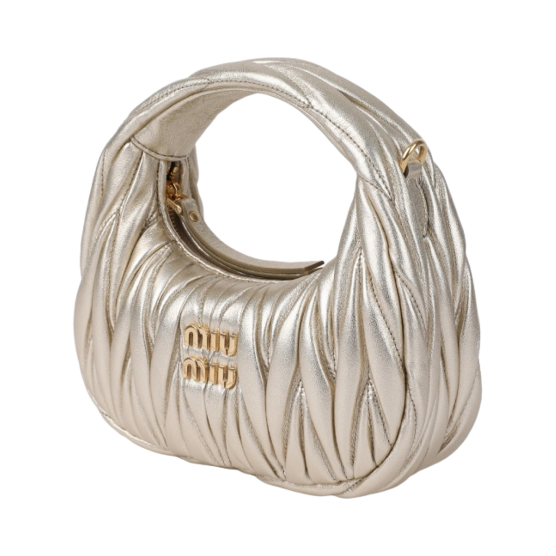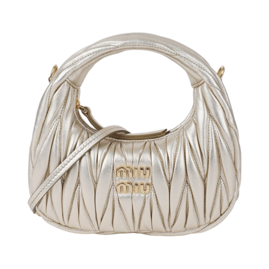 Miu Miu Wander Matelasse Nappa Leather Hobo Mini Bag Pyrite