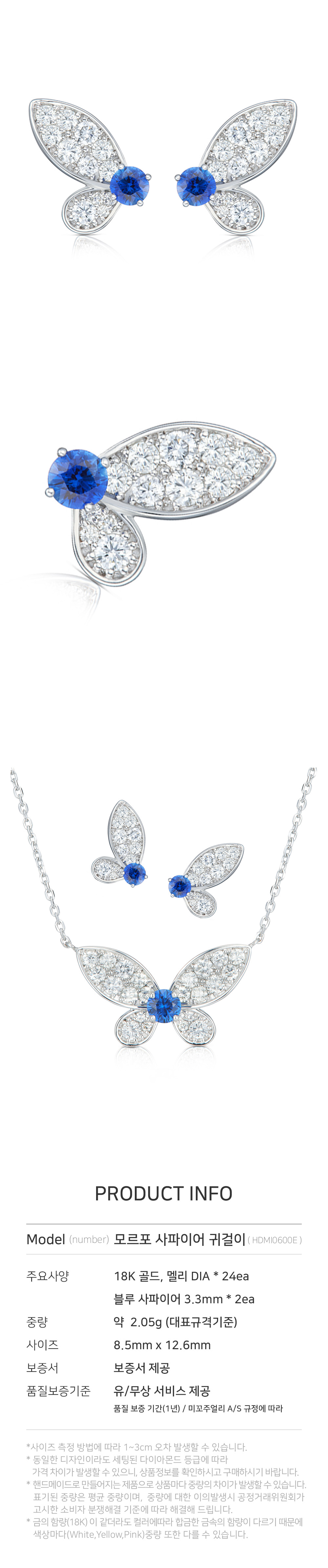 미꼬 모르포 사파이어 다이아몬드 파베L 귀걸이 화이트 골드