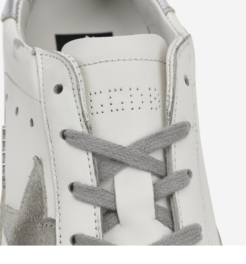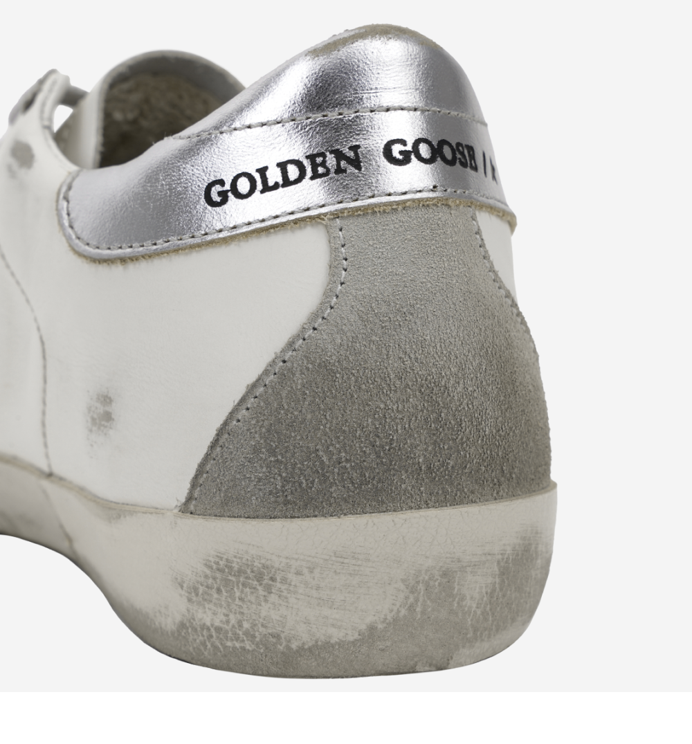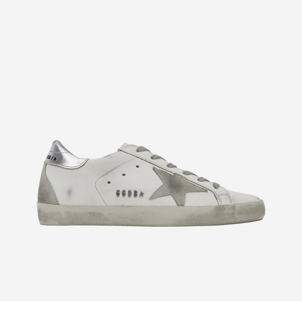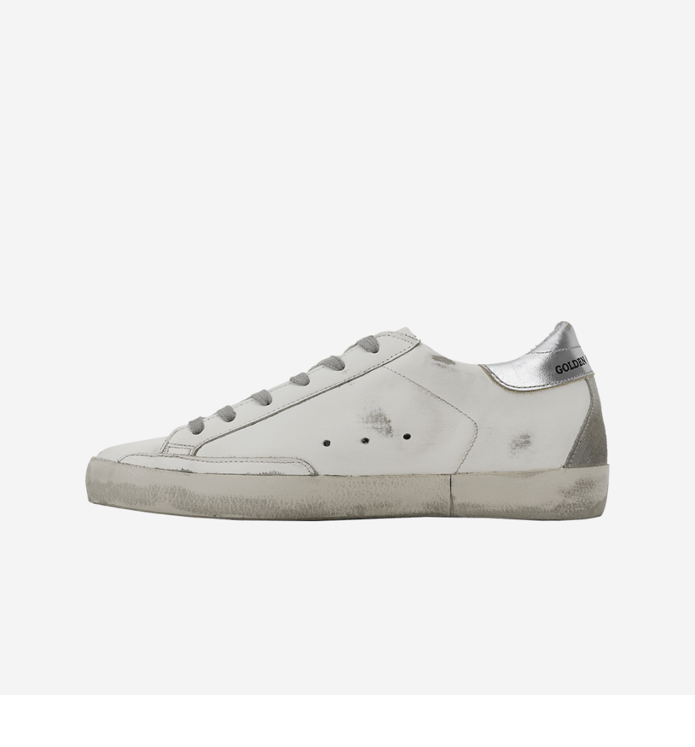 (W) Golden Goose Superstar White Silver Heel Tab Sneakers
