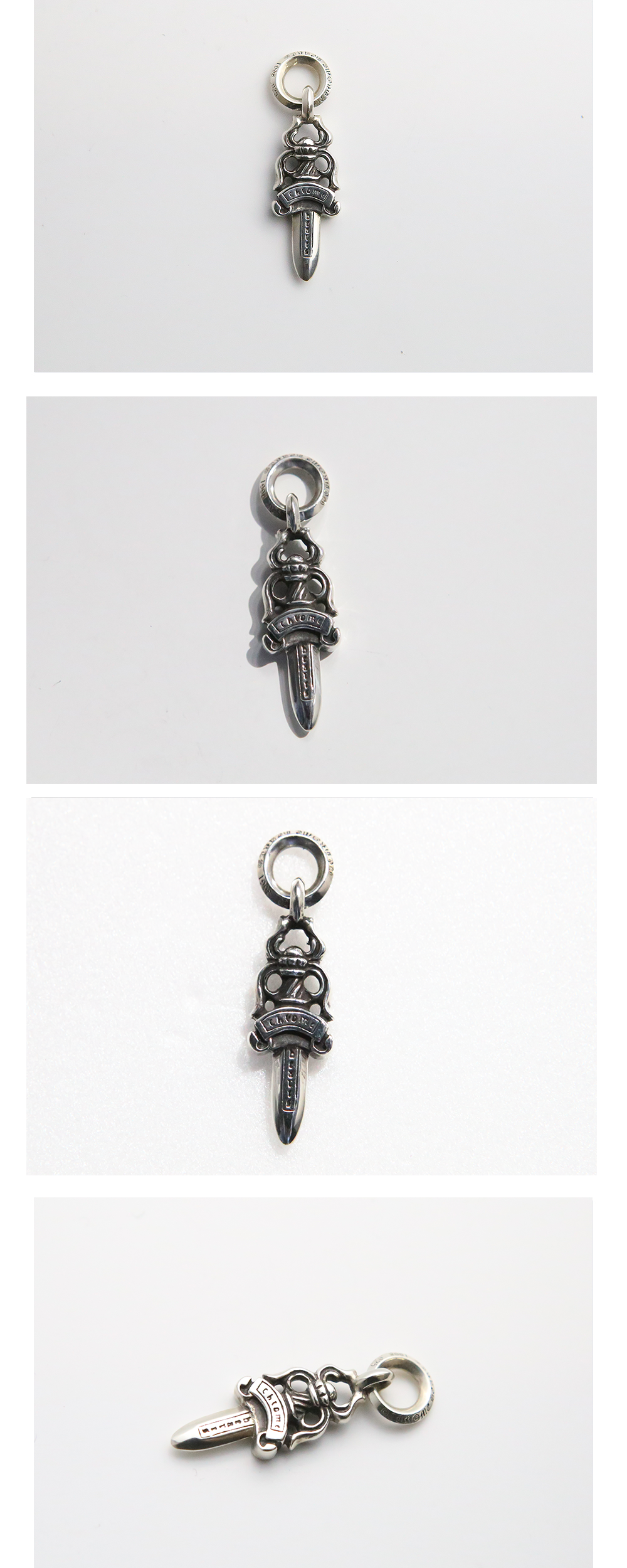 Hansroom Chrome Hearts #5 Dagger Charm 한스룸 크롬하츠 #5대거 참 *모델 품번 120 111 456 *상품 상태 중고 B등급 *주의 수제작 브랜드 특성상 개체차이가 있을 수 있음 *소재 925실버 *치수 가로 약 1.1cm 세로 약 3.8cm (측정 방법에 따라 사이즈에 일부 오차가 있을 수 있습니다.) *구성품: 한스룸쇼핑백,자체 보증서, 폴리싱천,악세사리 케이스