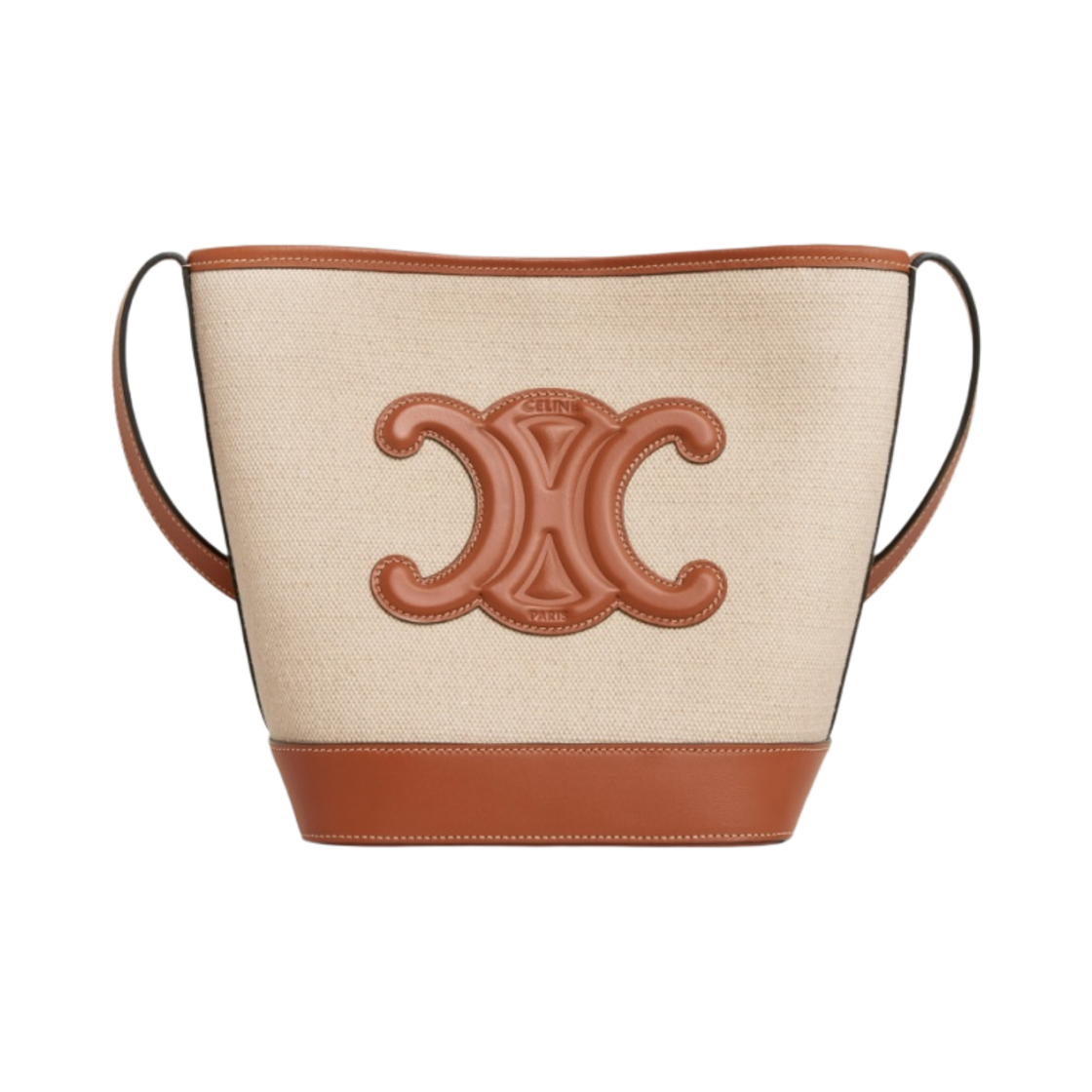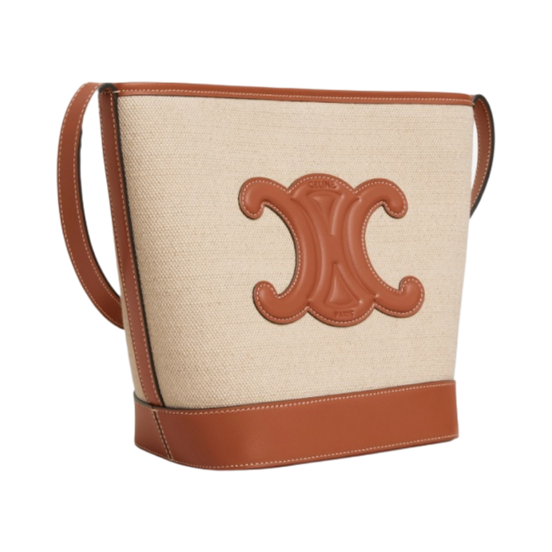 셀린느 텍스타일 카프스킨 스몰 버킷 퀴어 트리옹프 내츄럴 탄