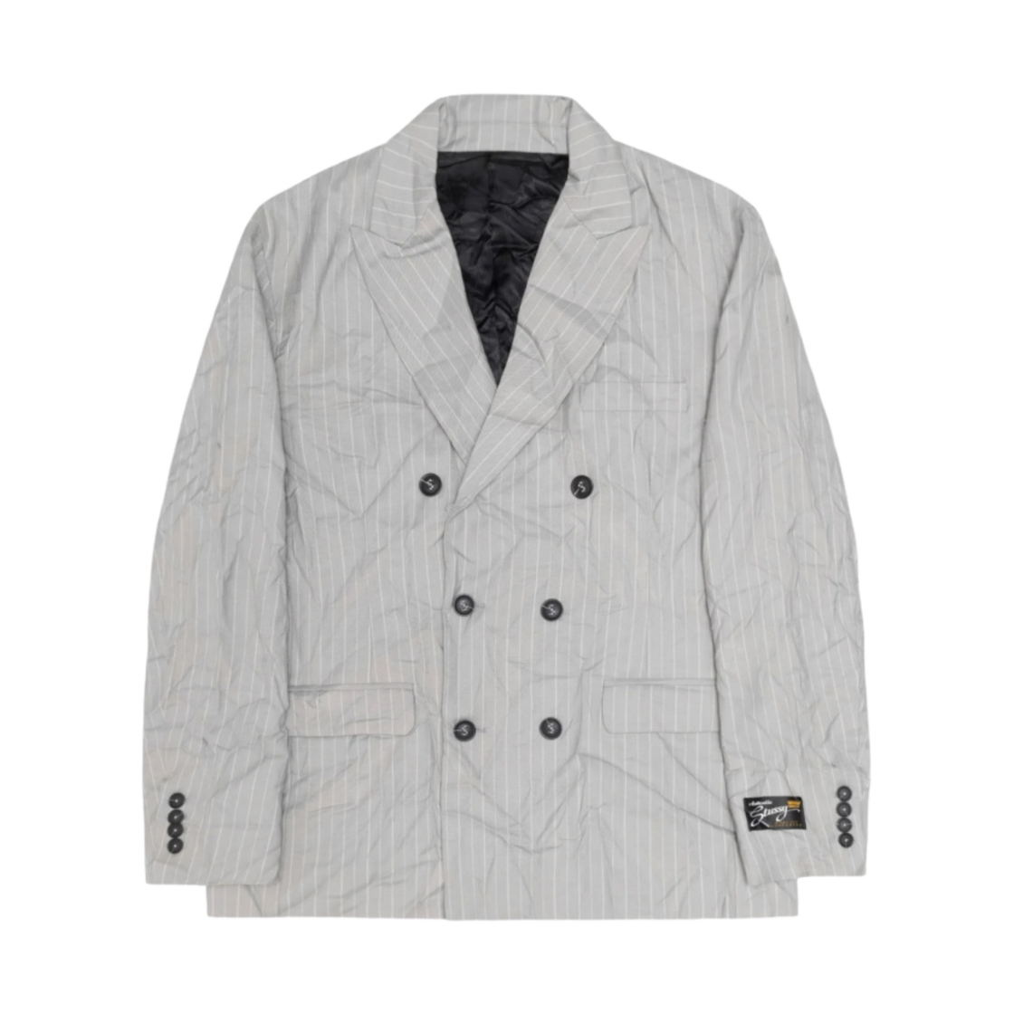 Stussy Wrinkled Stripe Double Breasted Blazer Grey