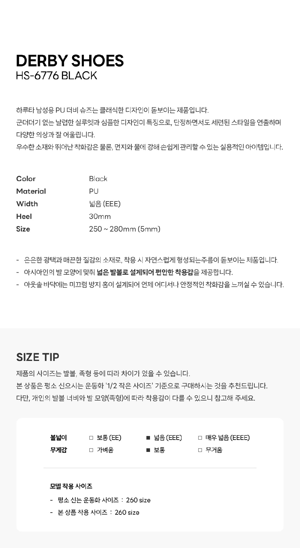하루타 HS-6776 PU 더비슈즈 블랙