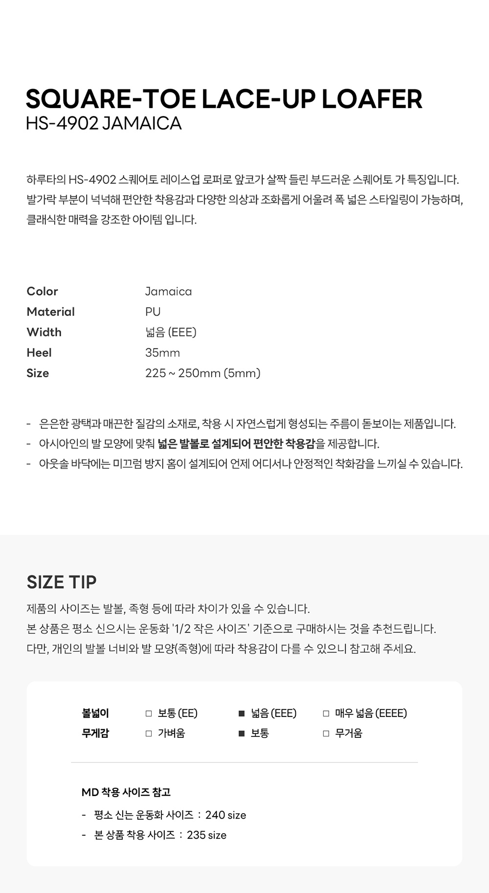 하루타 HS-4902 라운드토 레이스업 슈즈 자메이카