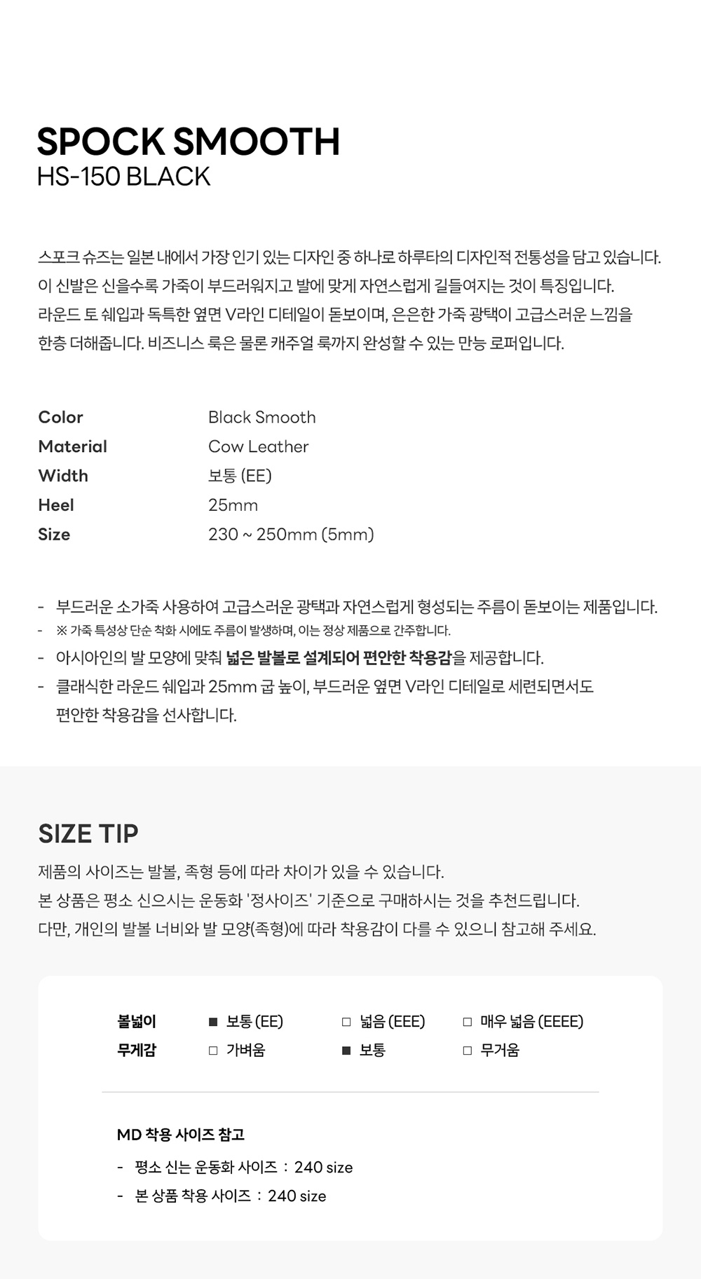 하루타 HS-150 스포크 슈즈 블랙 스무스