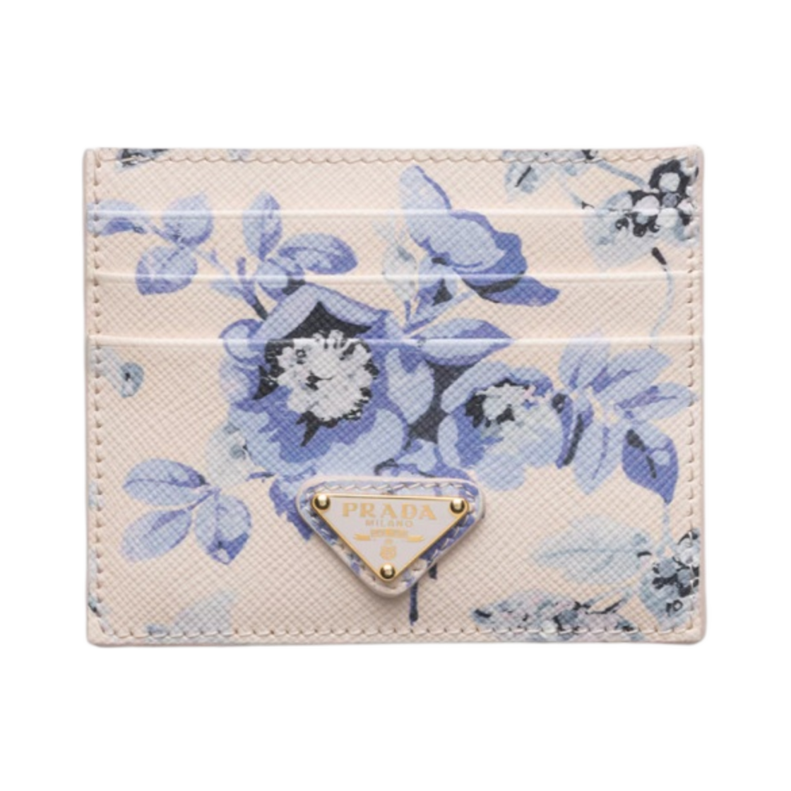 프라다 프린티드 사피아노 레더 카드 홀더 페리윙클 블루