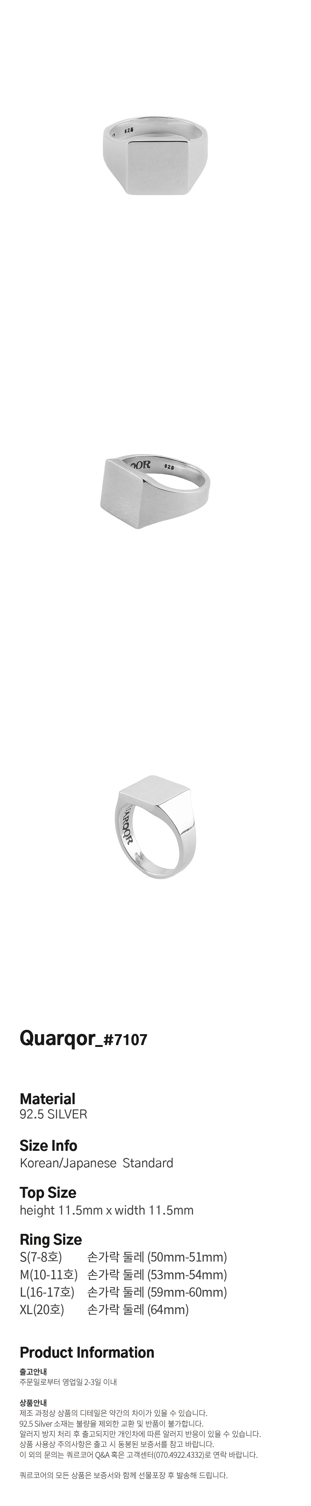 쿼르코어 #7107 실버92.5 링