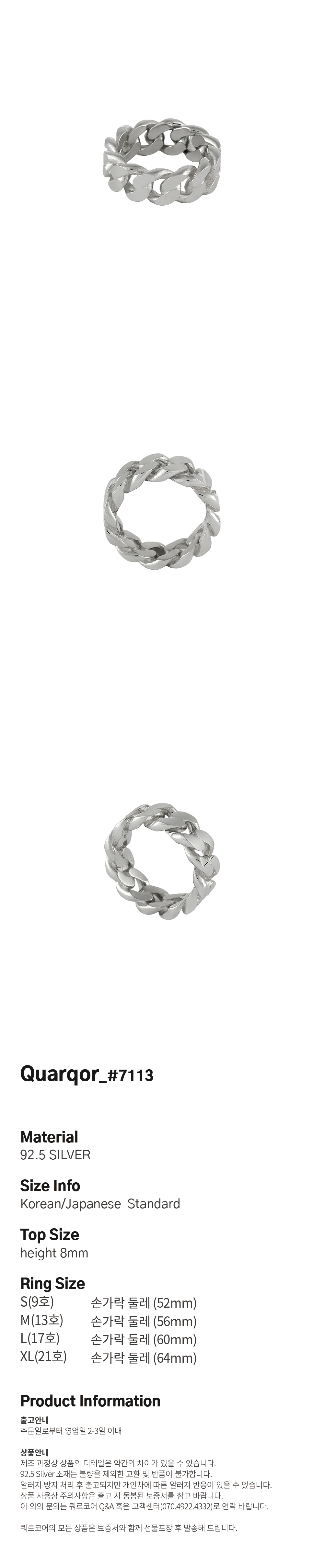 쿼르코어 #7113 실버92.5 링