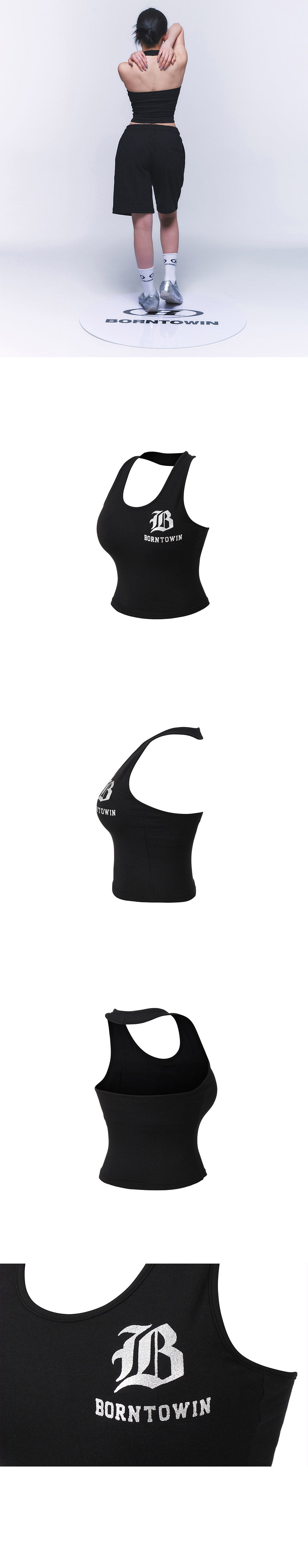 [DETAILS] * 심볼 B 홀터넥 슬리브리스 - 통기성 및 착용감 좋은 코튼모달스판 원단 - 새롭게 선보이는 심볼 B 로고 글리터 프린팅 - 탈부착 브라패드 - 유니크한 홀터넥 스타일 Material : COTTON 62% MODAL 33% POLYURETHANE 5% Fitting : 1 Size, 171cm, 57kg