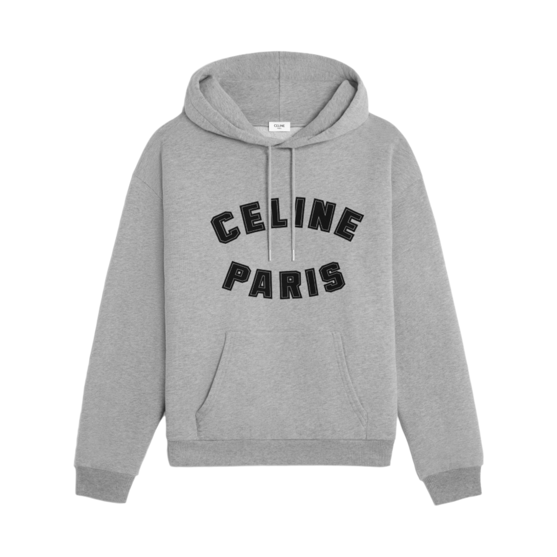 Celine Paris Loose Hoodie in Cotton Fleece Grey Melange