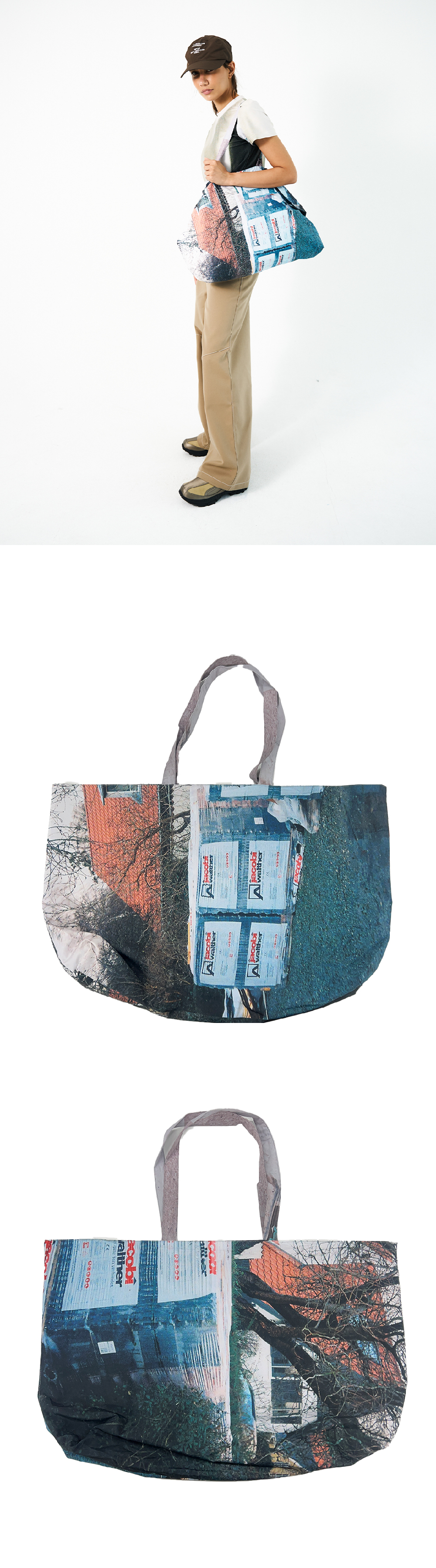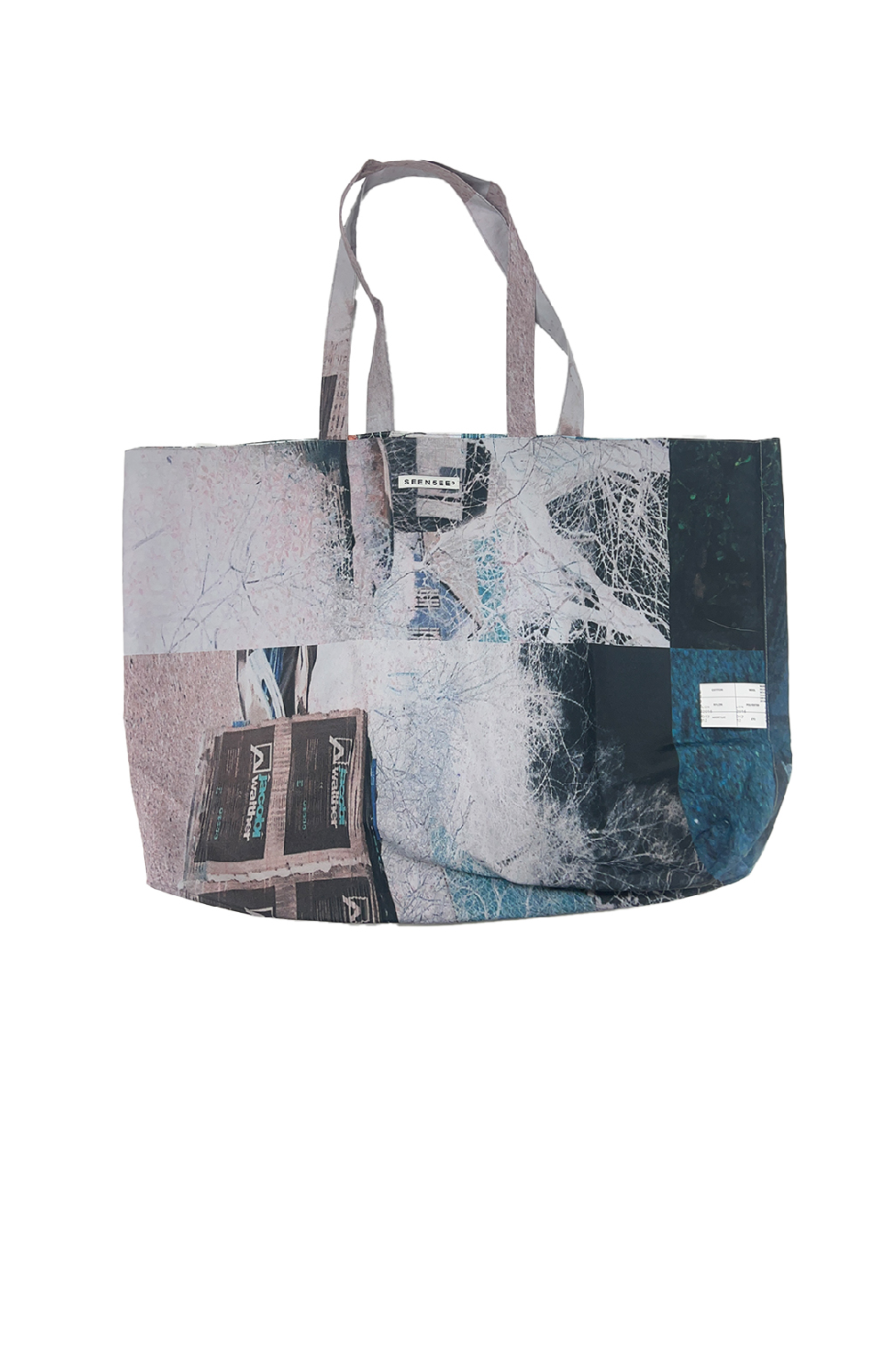Detail - Photo printing - Reversible - Big size tote bag - Polyester fabric - 전체 포토 프린팅 - 양면 사용 가능 - 수납이 용이한 큰사이즈 토트백 - 주름이 잘 가지않는 폴리에스테르 원단 *프린팅 위치가 제품마다 미미한 차이가 있습니다 SIZE LENGTH 59cm HEIGHT 42cm WIDTH 12cm Made in South Korea Washing Information Machine wash cold With like colours Do not bleach