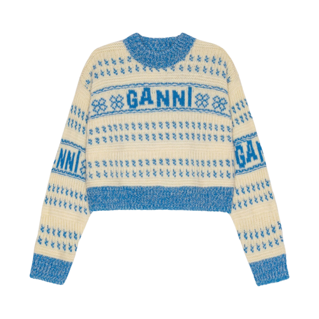 (W) 가니 램스울 크롭 오넥 풀오버 스트롱 블루