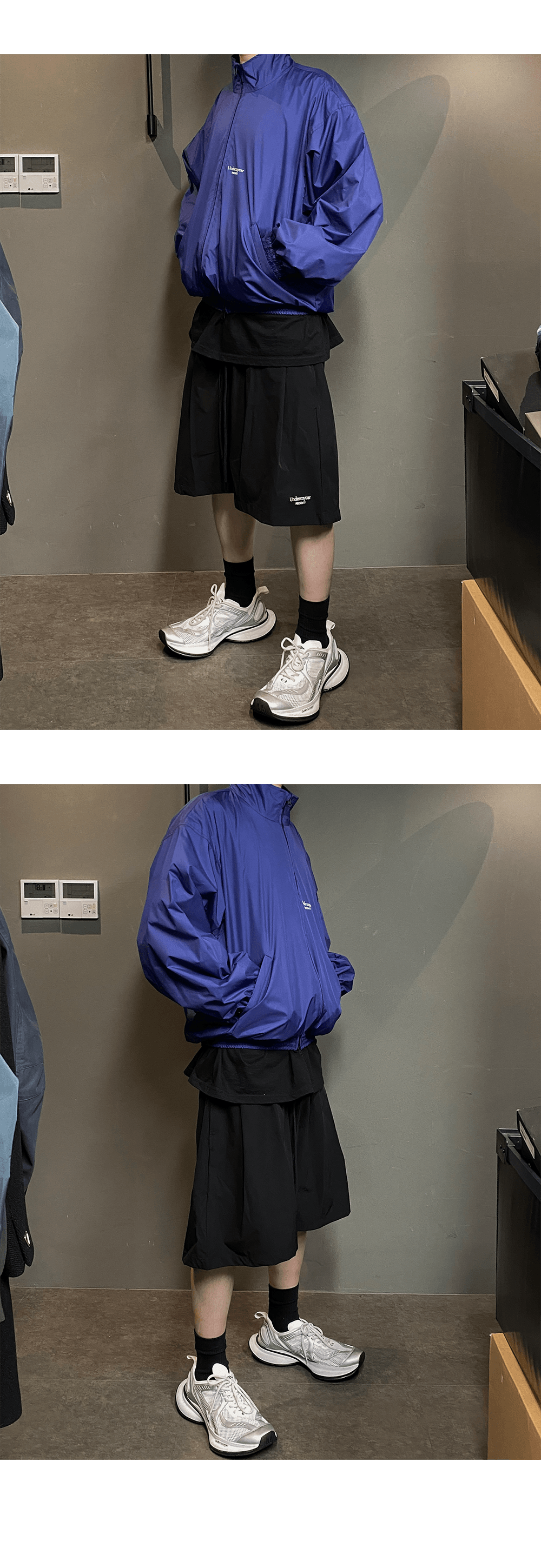 언더마이카 무.24 안티 Fxxking 로고 플레이 크롭 집업 자켓 네이비