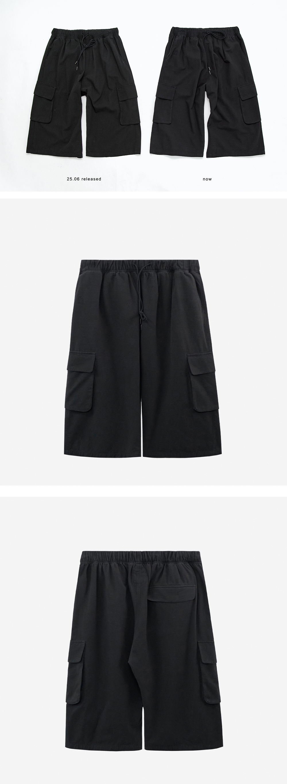 index 1/2 cargo pants - 부드러운 촉감의 이지한 카고 팬츠 - 정강이에 닿는 6.5부 길이감 - 다회의 바이오 워시로 자연스러운 질감 - 밴딩 웨이스트 - 사이드 넉넉한 사이즈의 카고 포켓 - 가먼트 다잉 *남성모델: 180 초반 / 마른 체형, 3사이즈 착용 *여성모델: 170 초반 / 마른 체형, 3사이즈 착용 *가먼트 다잉 제품 특성상 생산 차수마다 색감이 조금씩 변경 될 수 있습니다. *다만 금번 차수 경우, 전 차수와의 색감차가 극히 미약해 별도 차이점은 코멘트 없이 발매 됩니다. 본 제품은 직전 차수와 유사한 실측 및 착용감으로 제작되었습니다. 기존 동일 제품을 착용해보신 고객의 경우, 동일 사이즈 선택 시 적합한 핏으로 착용이 가능합니다. 정확한 상세 사이즈의 경우, 실측표 확인 부탁드립니다.