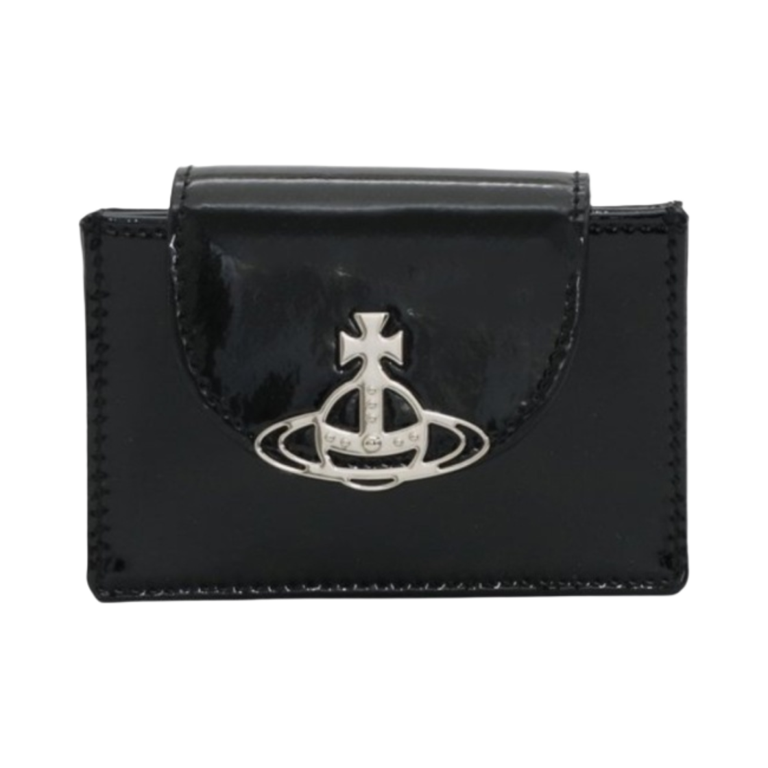 비비안 웨스트우드 샤이니 페이턴트 플랩 카드 홀더 블랙