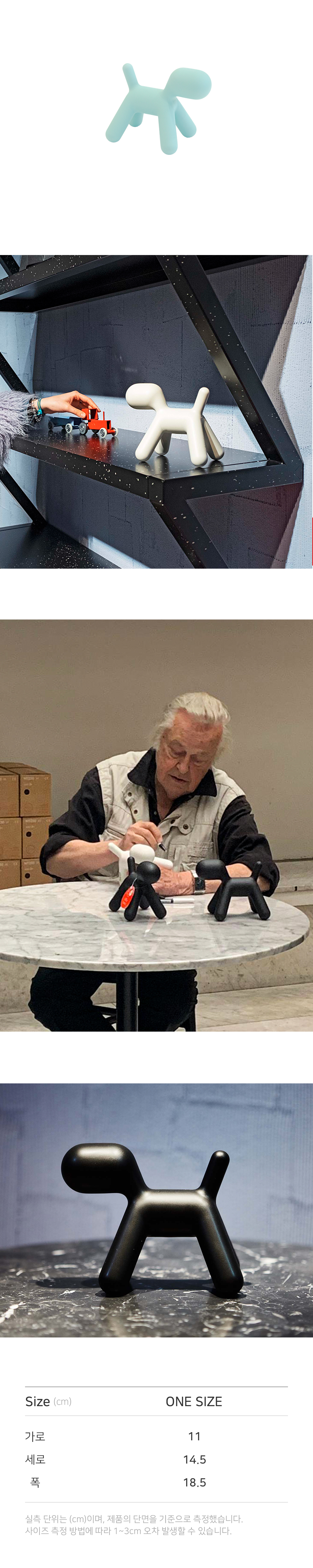 강아지 형태를 심플하게 표현한 오브제입니다. 합성 소재 플라스틱으로 제작되어 관리가 쉬우며, 실내외에서 모두 사용 가능합니다.