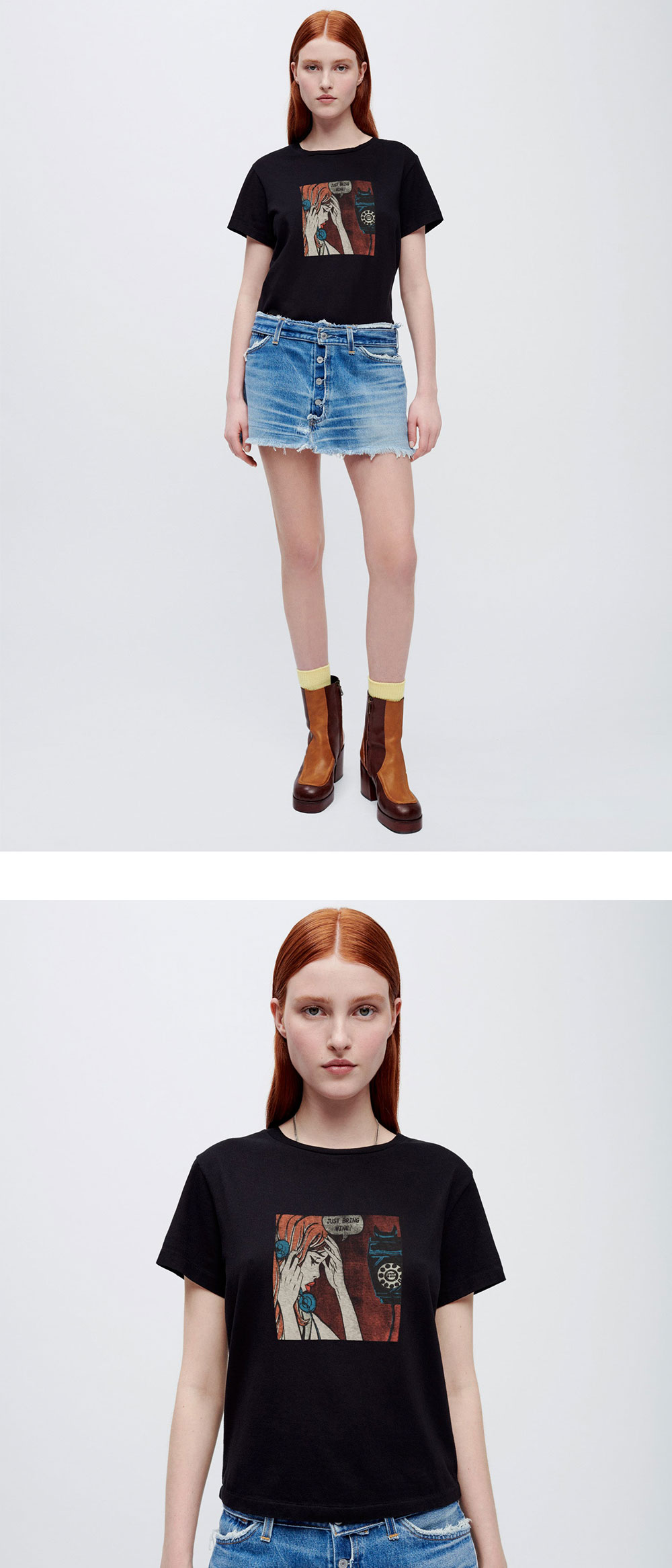 리던 우먼 클래식 저스트 센드 와인 티셔츠 워시드 블랙 - 24FW