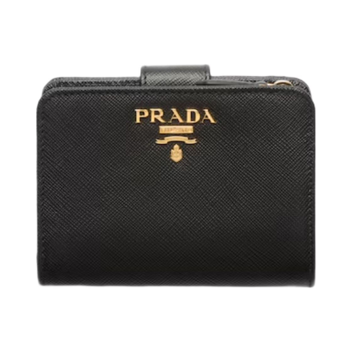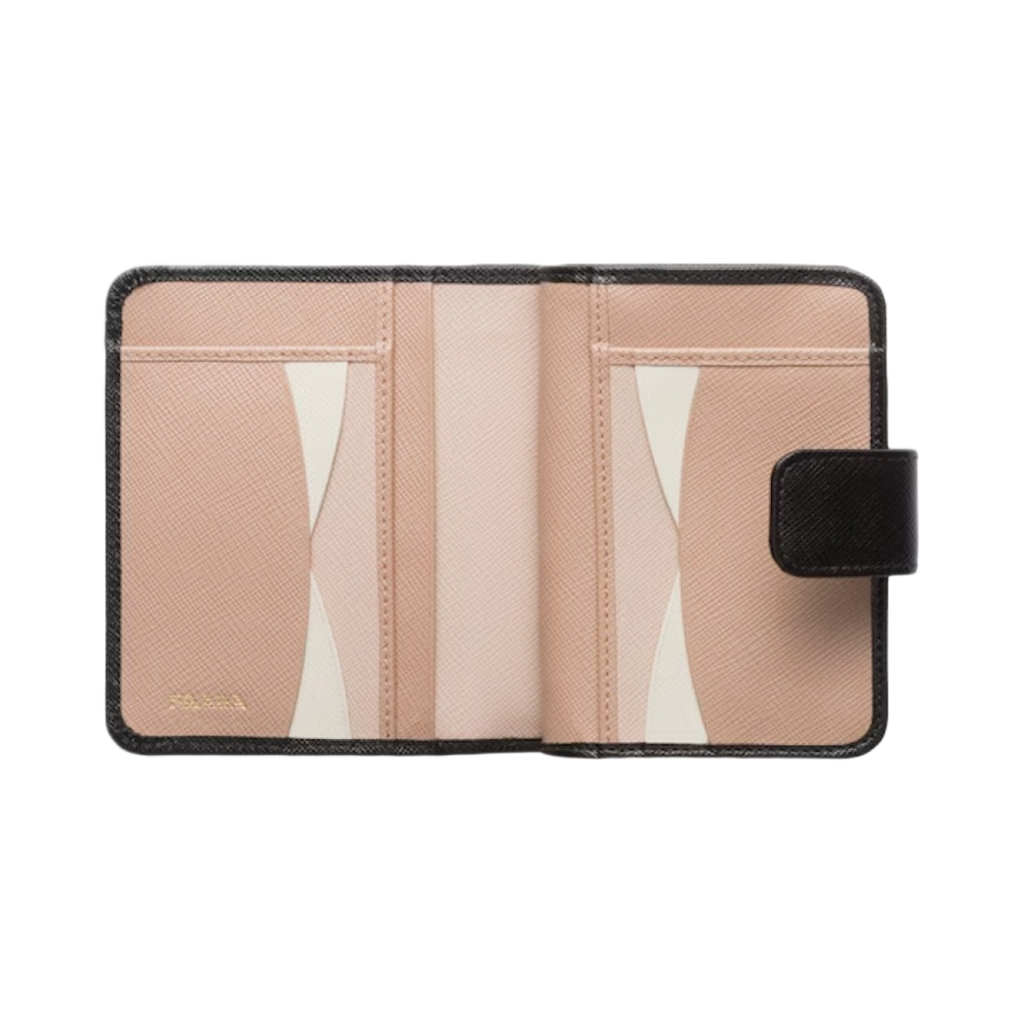 Prada Small Saffiano Leather Wallet Black Pale Pink