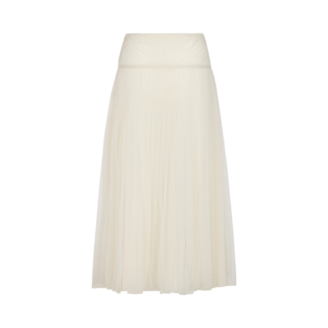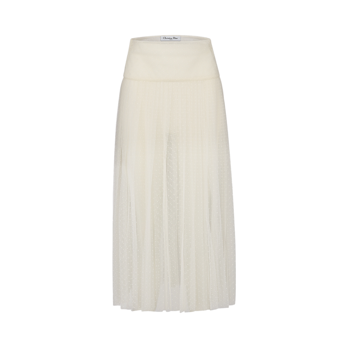 (W) Dior Mid-Length Pleated Skirt Ecru Plumetis Tulle