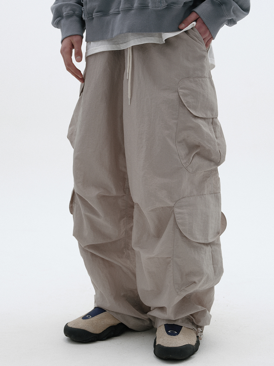 스웨이드 나일론 카고 팬츠 라이트 그레이