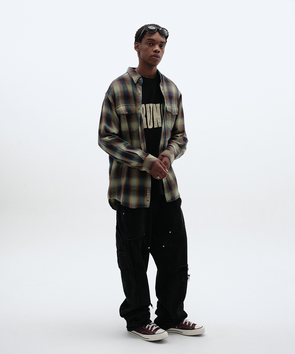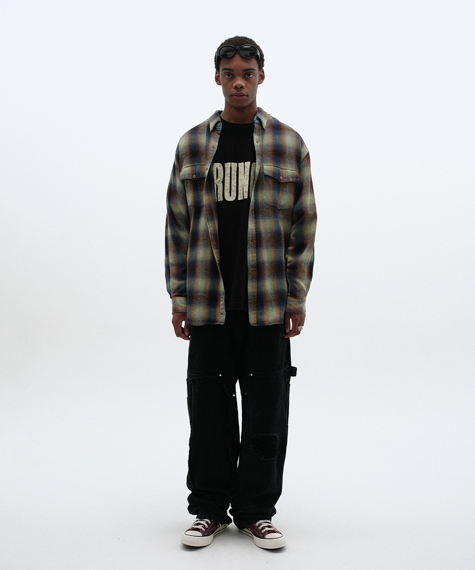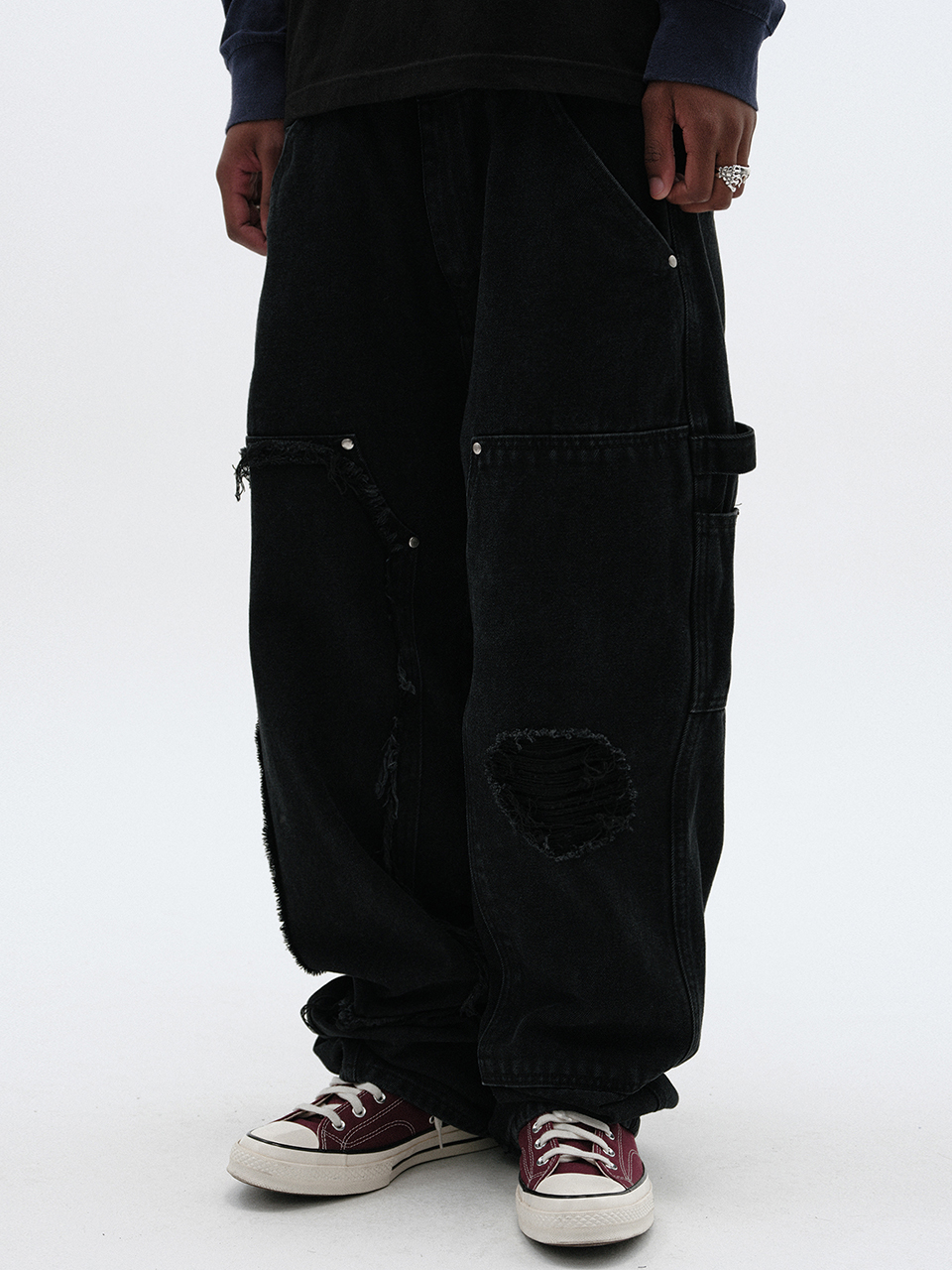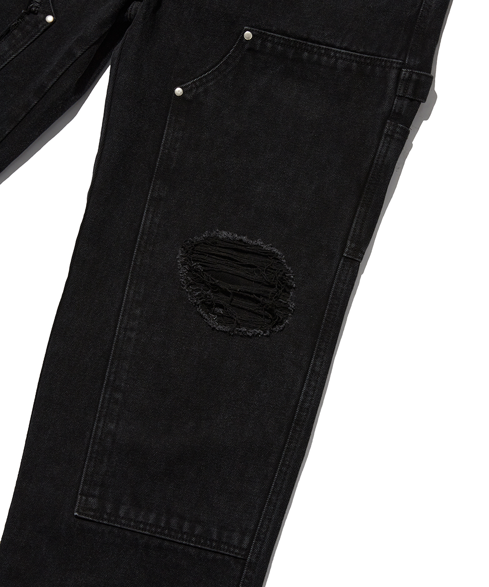 스웨이드 데미지 더블 니 팬츠 블랙