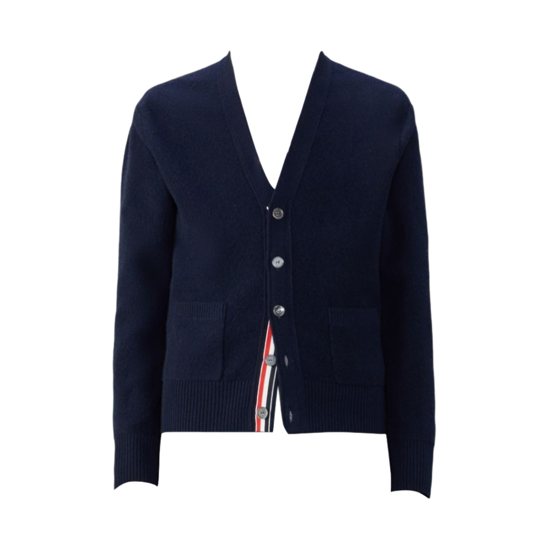 Thom Browne Merino Wool Washed Pique Cardigan Navy