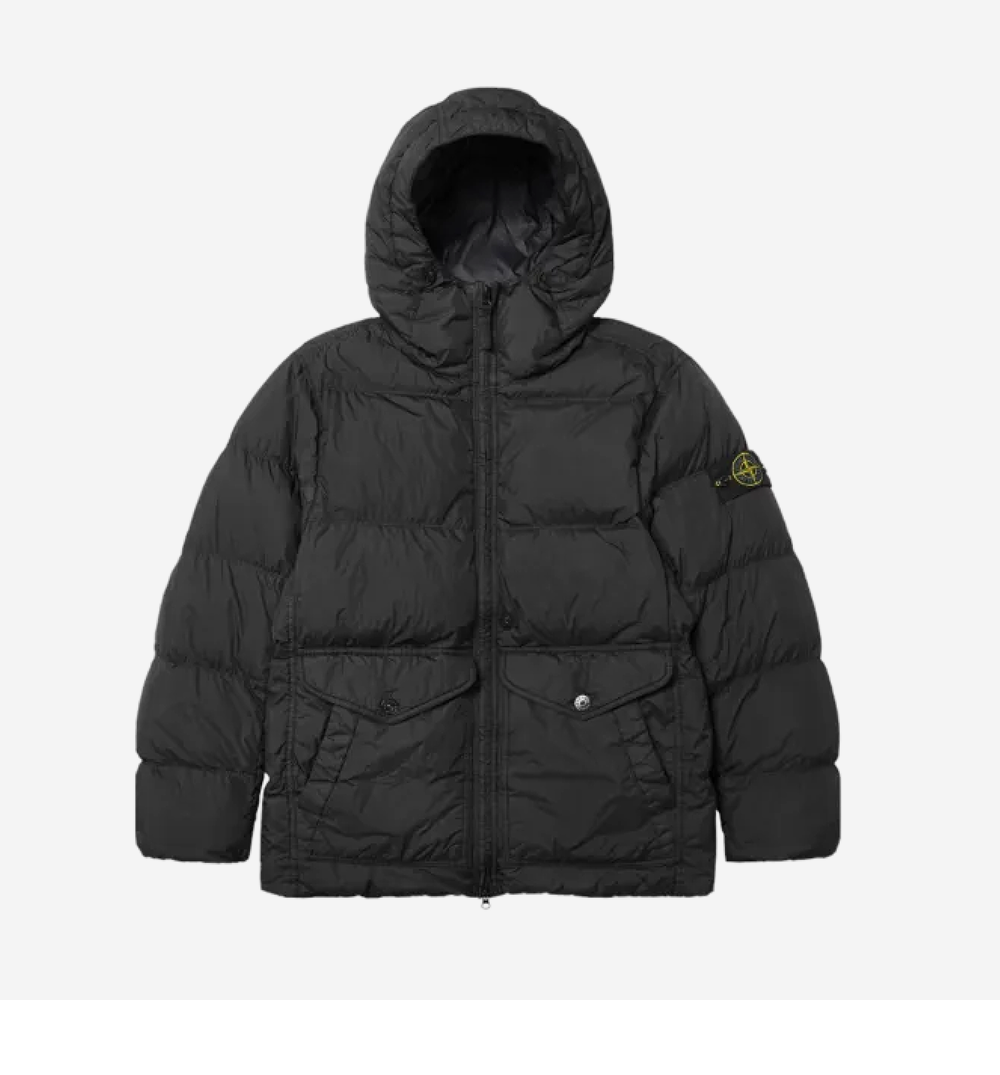 Stone Island 40723 Crinkle Reps Hooded Down Jacket Black - 24FW