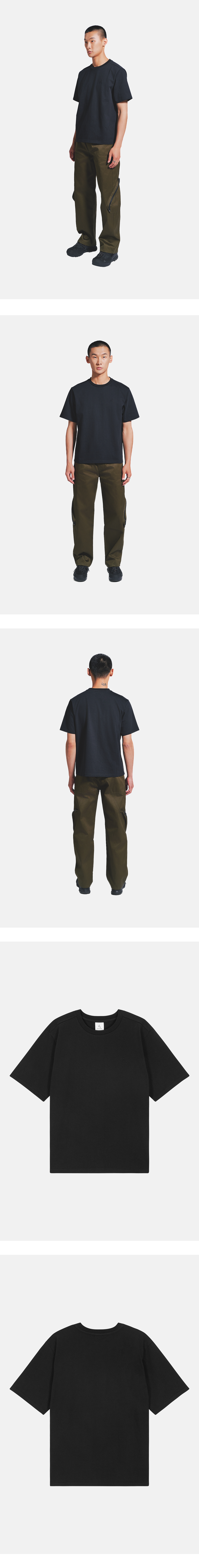 DETAILS * Black color * Regular fit * Embroidery on the chest and shoulders 부드러운 터치감의 베이직 티셔츠입니다. 레귤러 핏으로 제작되어 편안한 착용감을 제공하며 가슴과 어깨에 원단과 동일한 색상의 자수가 있습니다. The model is 182 cm tall and is wearing a size L.