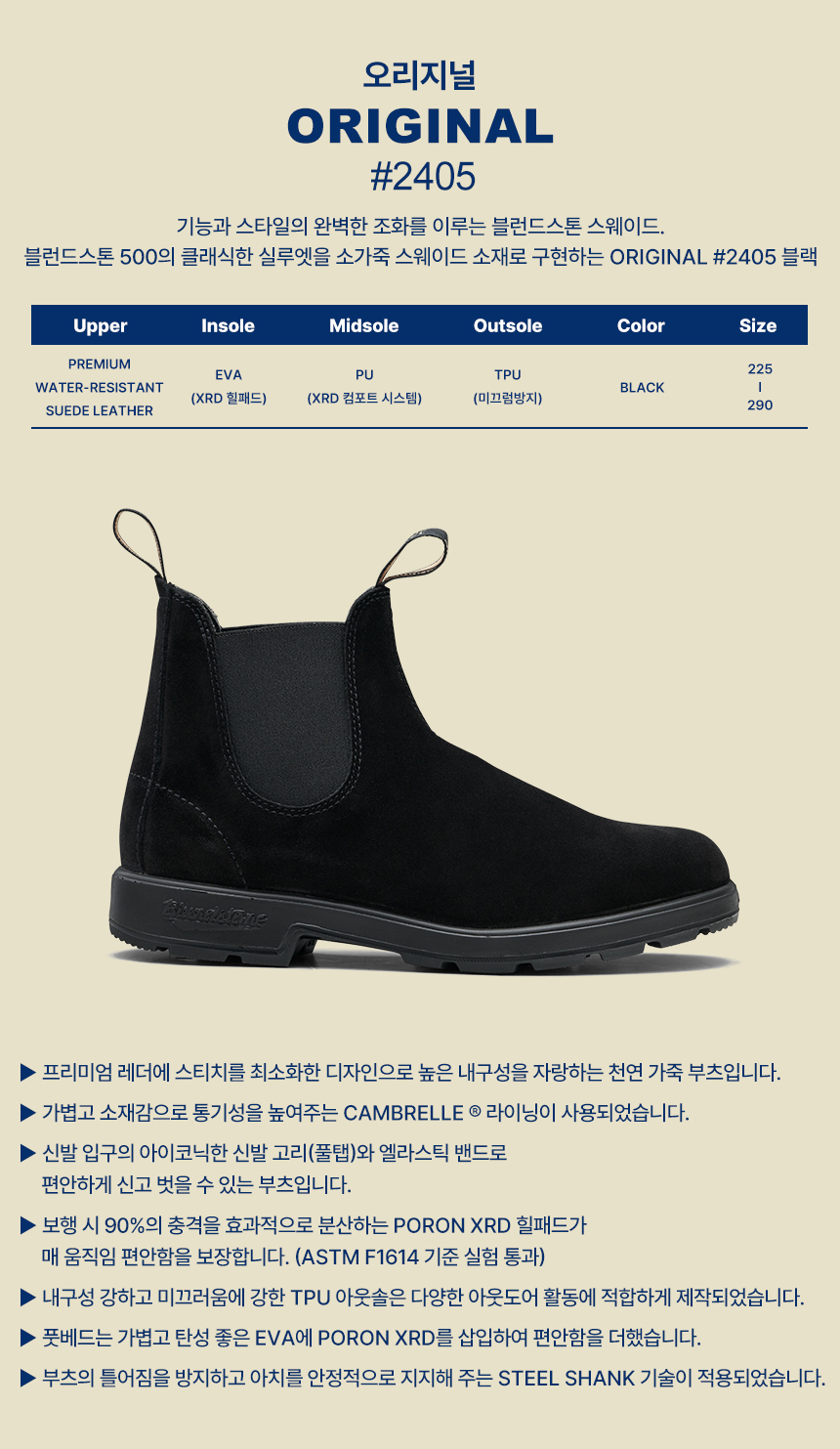 블런드스톤 제품은 최상급의 천연 풀그레인 레더,누벅,스웨이드로 만들어 집니다.