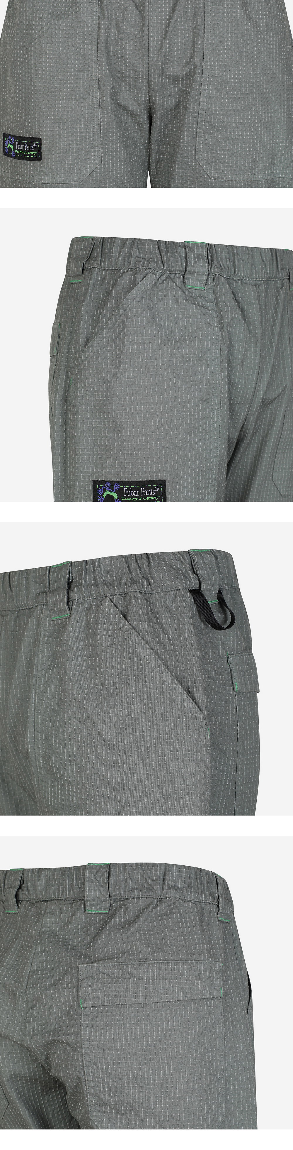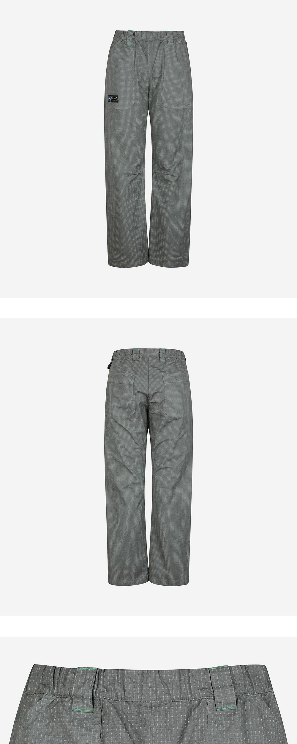 액티브한 활동을 위해 디자인된, 면-나일론 혼방 팬츠 - 신축성 높은 밴드 타입의 허리 - 좌측 허리에 액세서리를 걸 수 있는 루프 디테일 - 전면 우측 포켓 로고 패치 디테일 - 전면 포켓 2개, 후면 플랩 포켓 2개