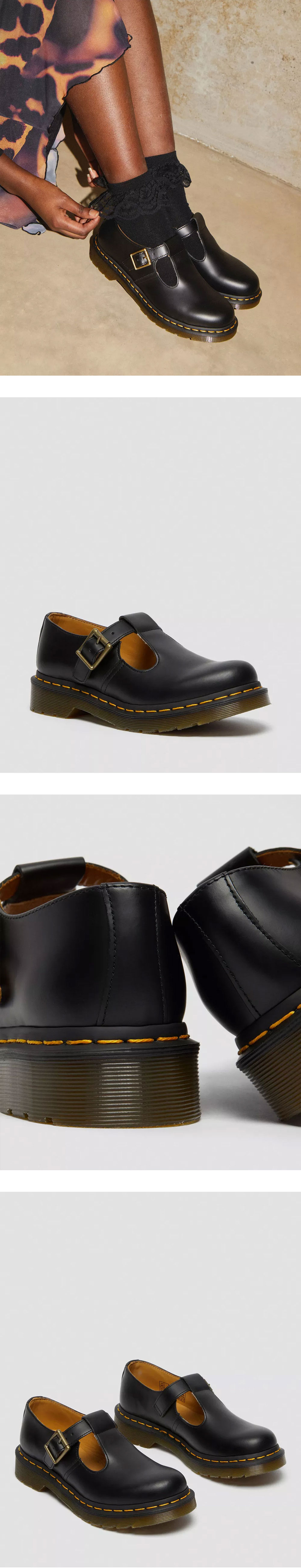 스쿨걸 룩에 닥터마틴만의 반항적인 해석을 더한 폴리 스무스 레더 메리 제인입니다. - 조절 가능한 T바 버클 잠금장치 - 에어 쿠션 솔