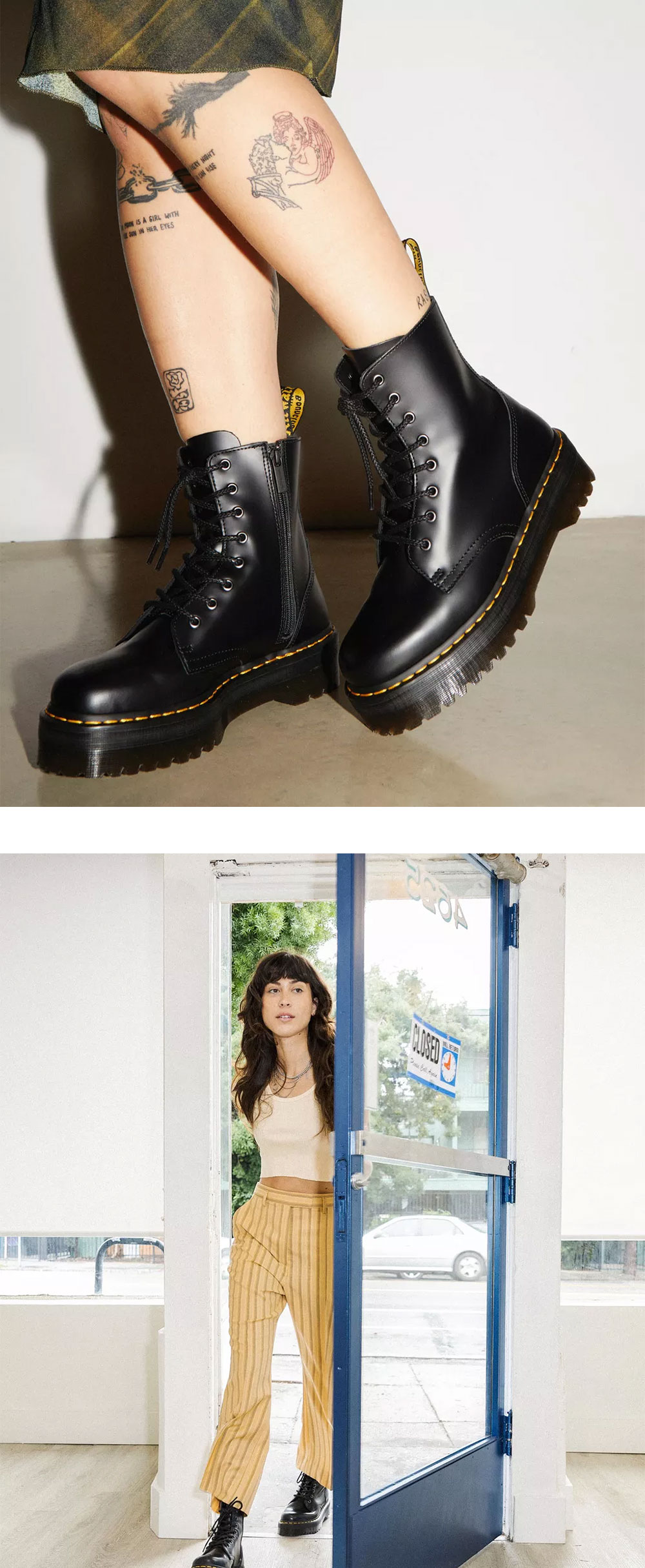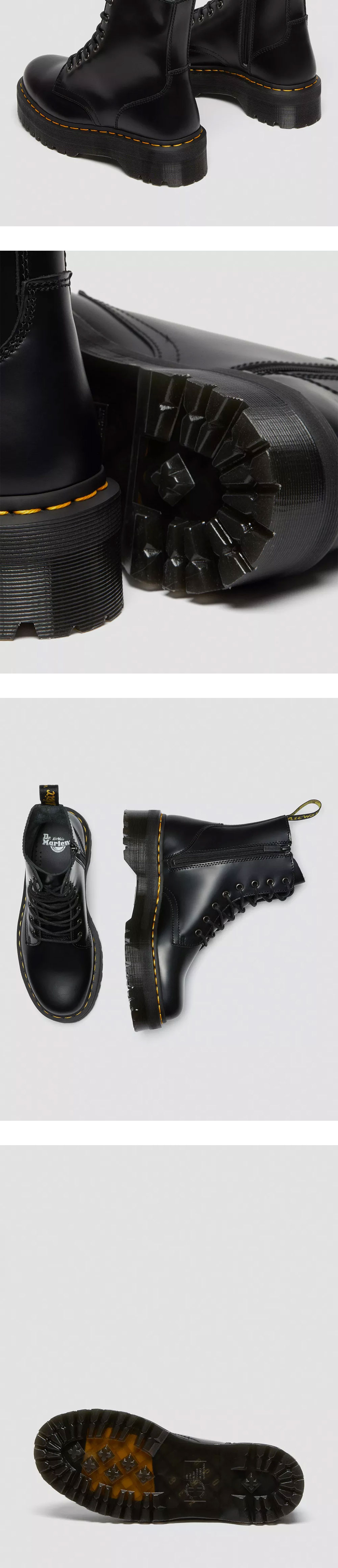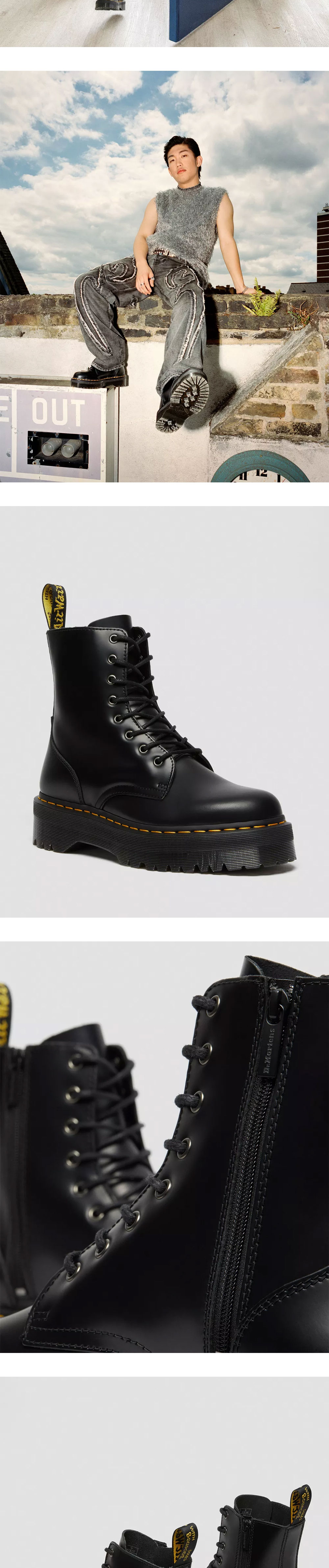 닥터마틴의 오리지널 8홀 부츠에 플랫폼 디테일을 더한 제이든 부츠입니다. - 광택있는 스무스 가죽 - 아이코닉한 스티칭과 힐 루프 디테일