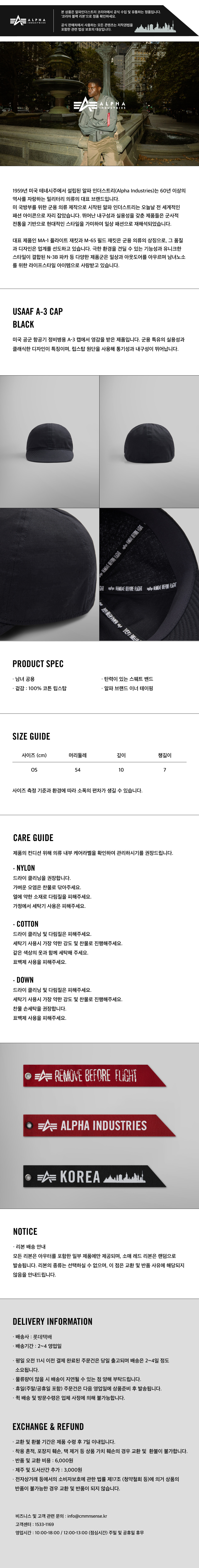 · 미국 공군 항공기 유지보수병용 A-3 캡에서 영감을 받음 · 탄력 있는 스웨트 밴드, 알파 브랜드 이너 테이핑 · 남녀 공용