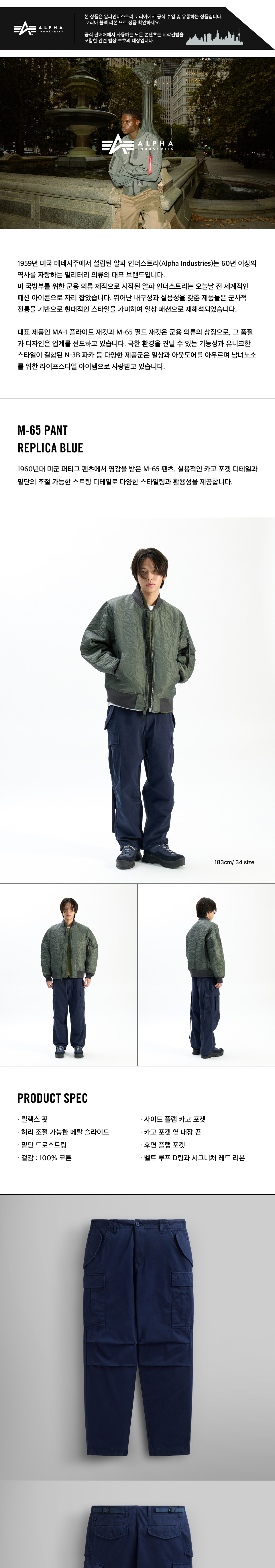 알파인더스트리 M-65 팬츠 레플리카 블루