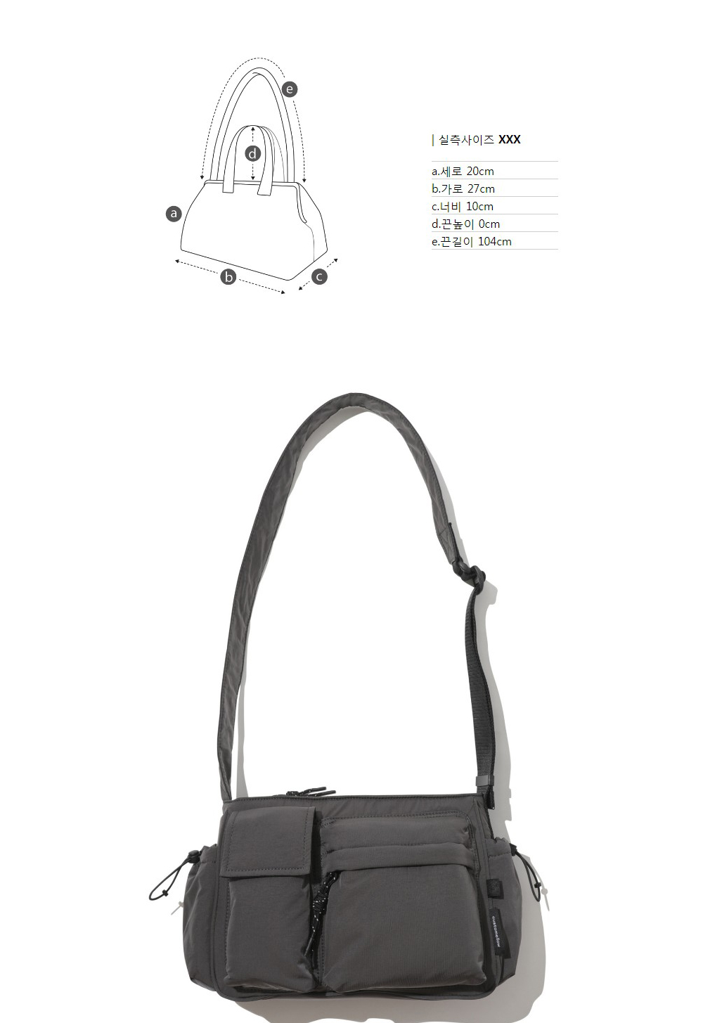 커스텀멜로우 에센셜 나일론 크로스 백 그레이
