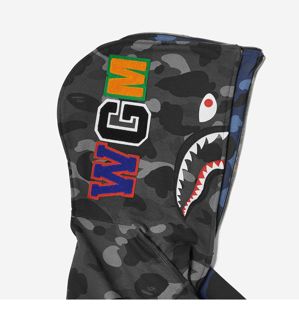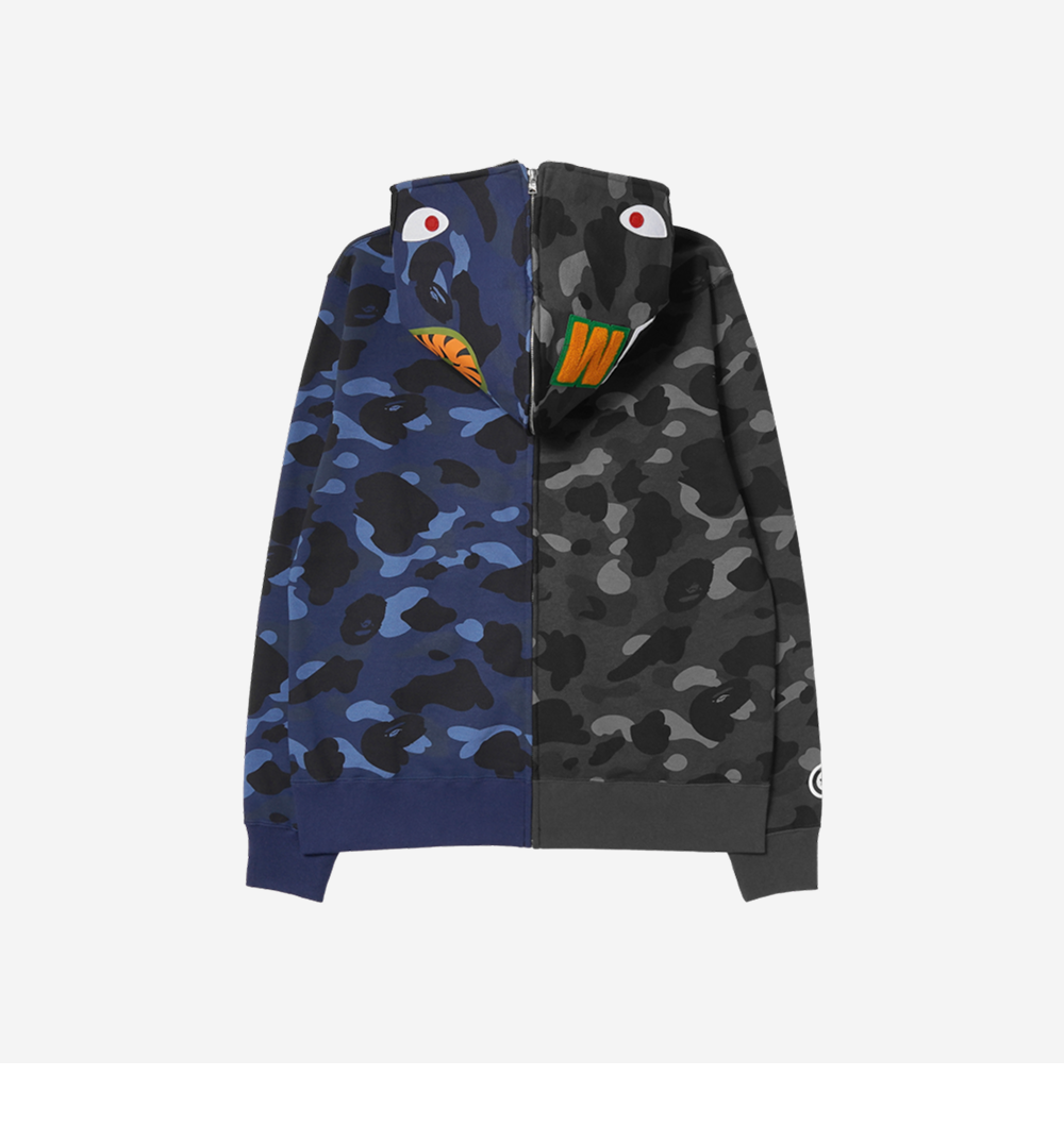 베이프 컬러 카모 세퍼레이트 샤크 풀 집 후드 블랙 네이비