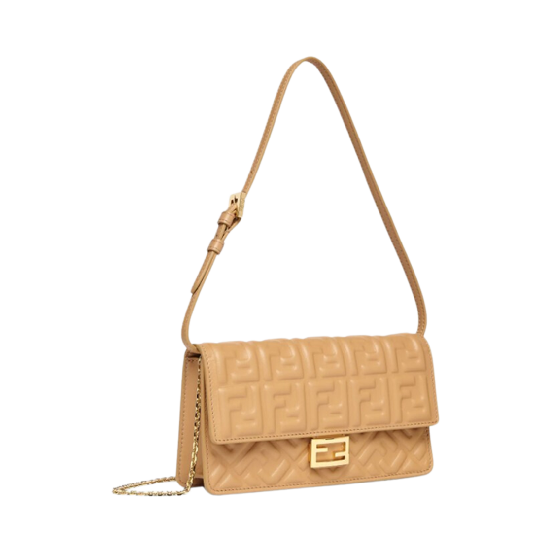 Fendi Nappa Leather Baguette Chain Wallet Light Brown