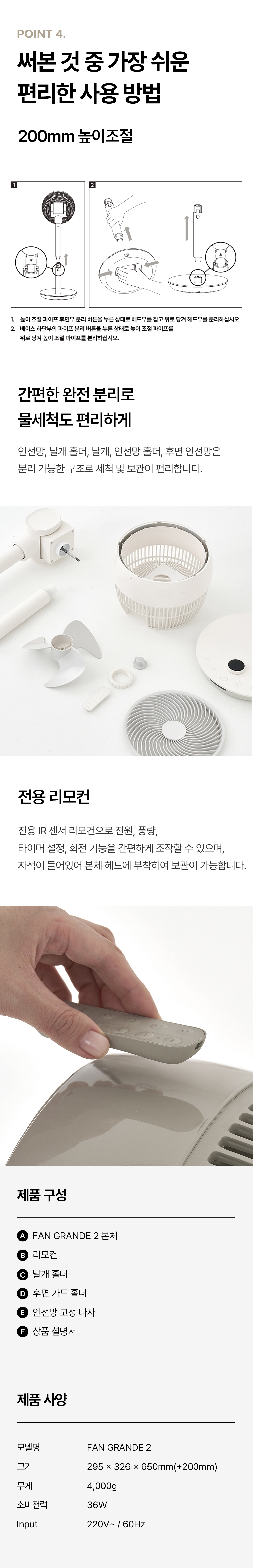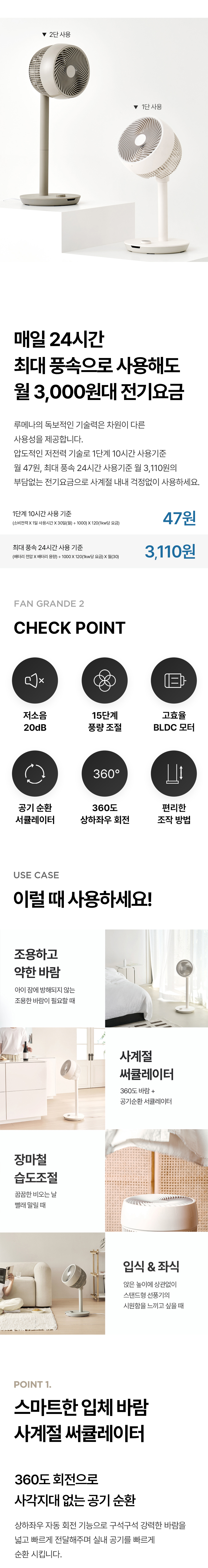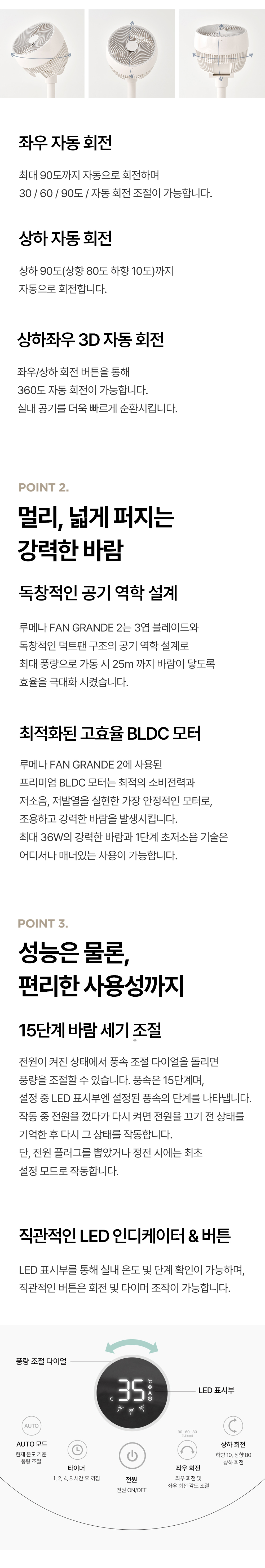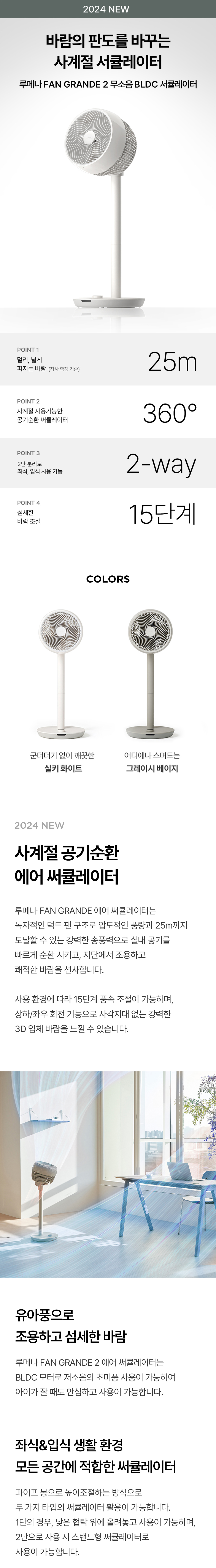 루메나 FAN GRANDE 2 무소음 BLDC 유선 에어 써큘레이터 실키 화이트