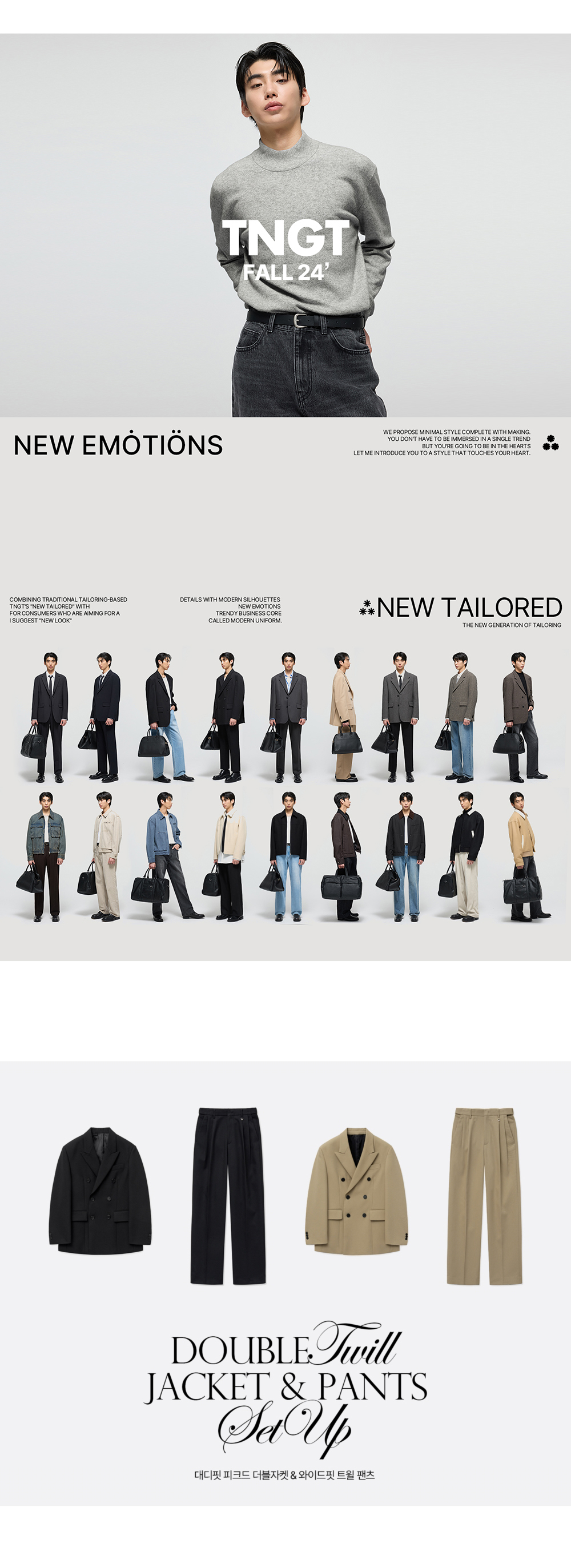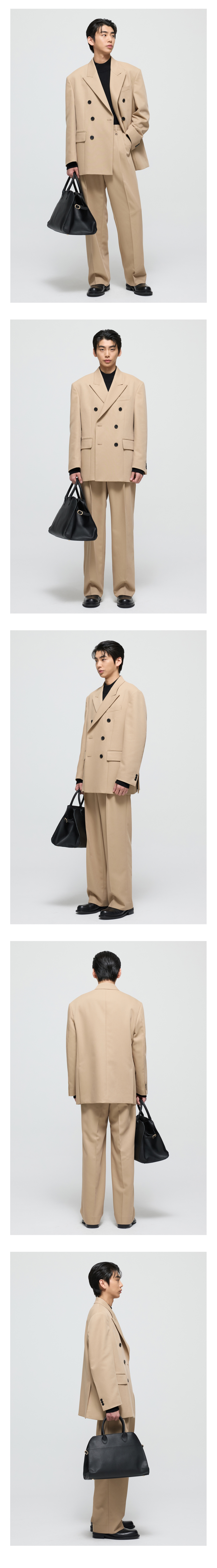 티엔지티 대디핏 피크드 더블 트윌 셋업자켓 베이지