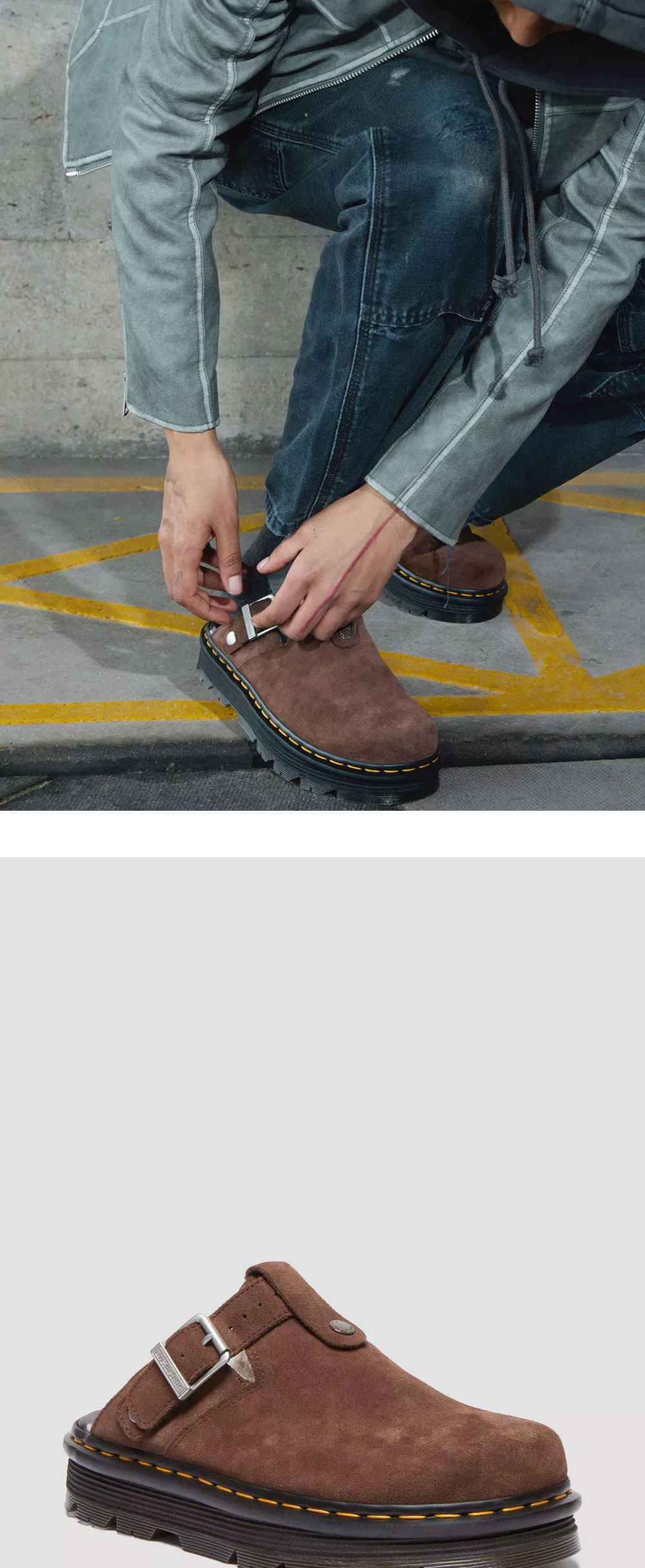 캐주얼한 실루엣과 스웨이드 특유의 질감이 더해진 닥터마틴의 제브잭 스웨이드 슬링백 플랫폼 뮬 다크 브라운입니다. - 따듯한 플리스 안감 - 조절 가능한 발등 스트랩 - 넓고 둥근 발모양의 풋베드