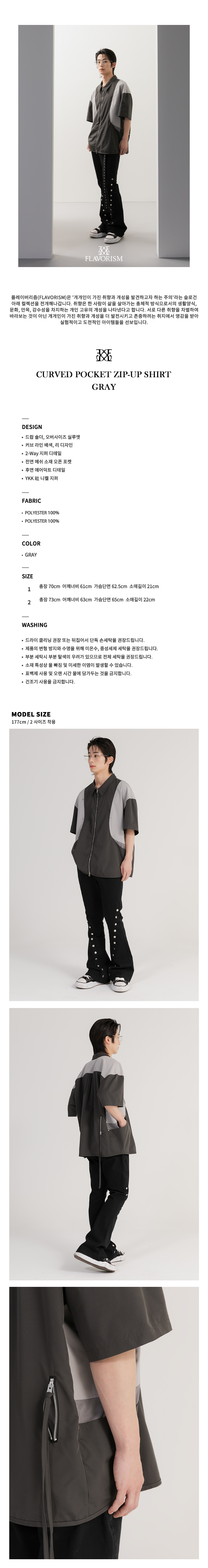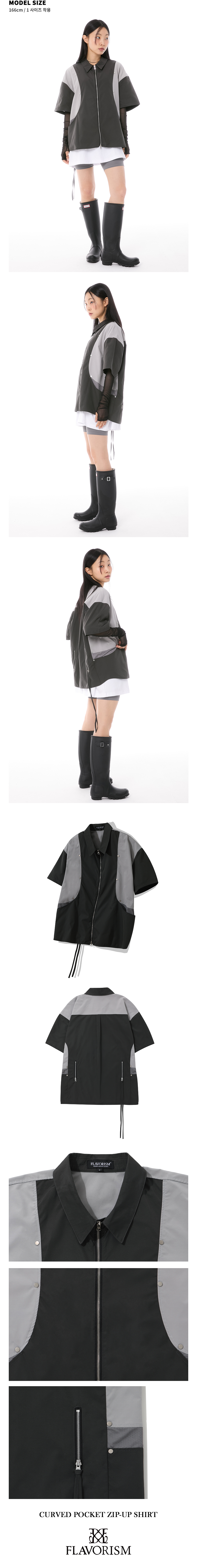 플레이버리즘 커브드 포켓 집업 셔츠 그레이
