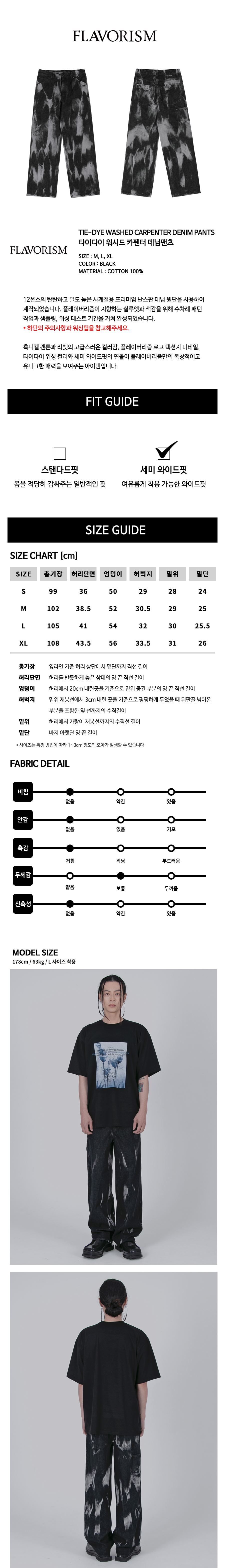 플레이버리즘 타이다이 워시드 카펜터 데님 팬츠 블랙