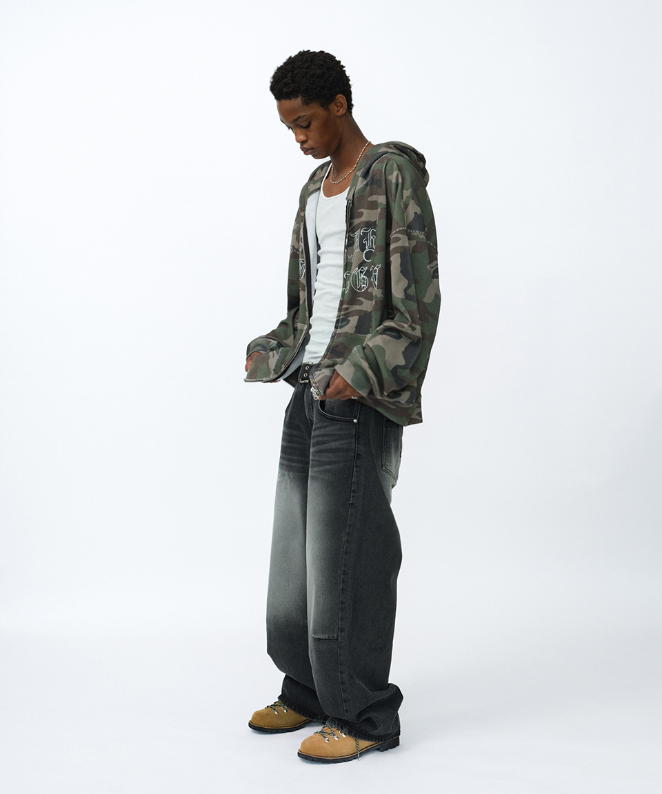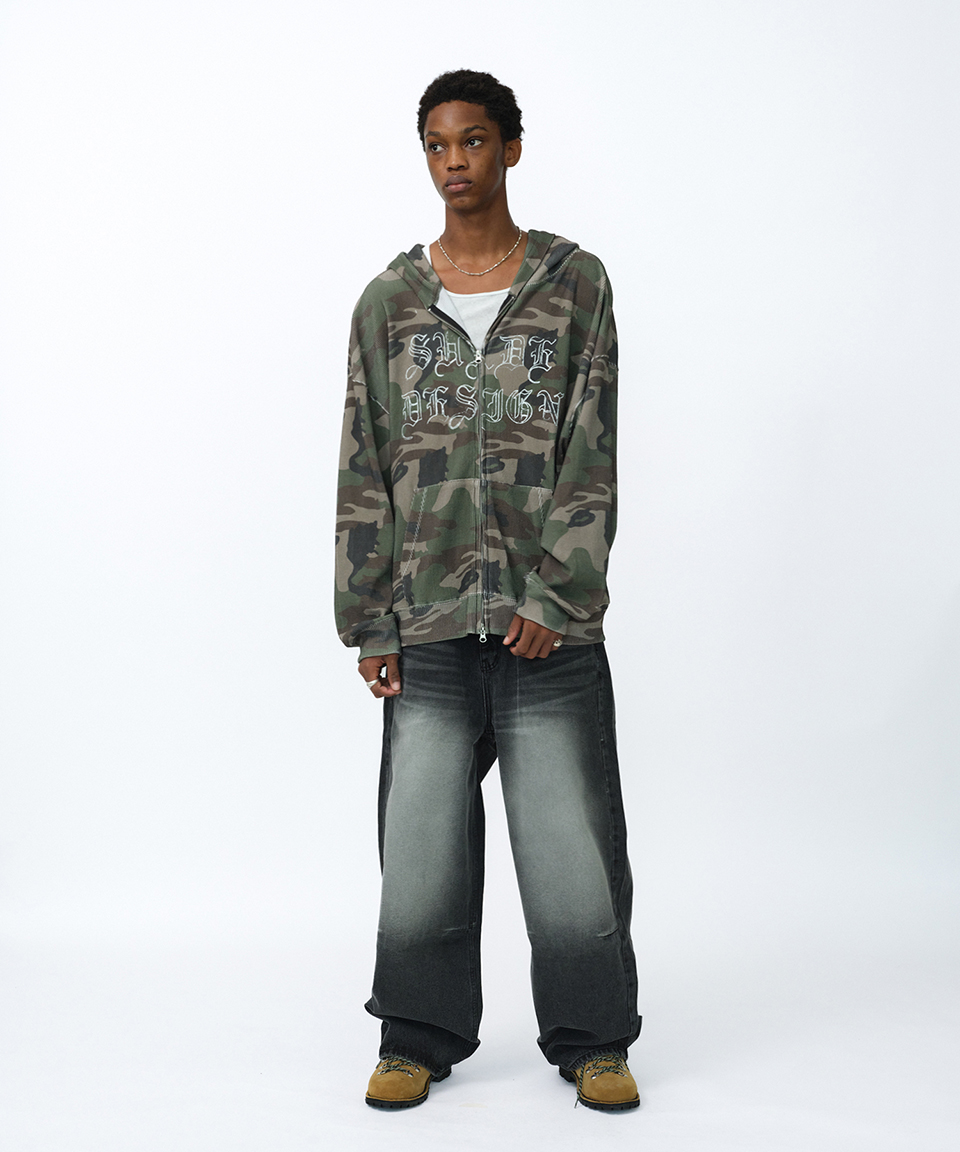 스웨이드 써멀 카모 후드 집업 카모