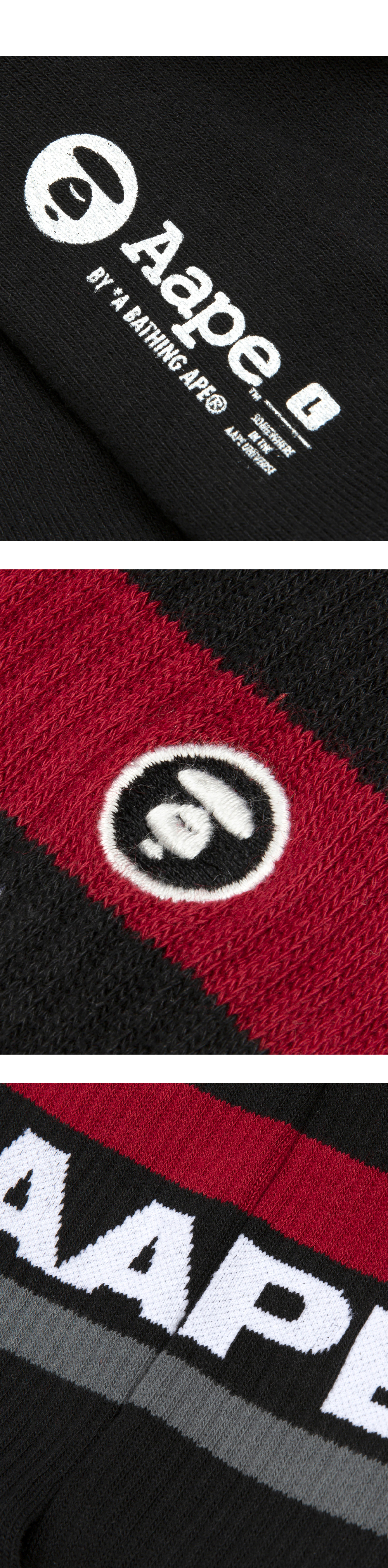 스트라이프 패턴과 로고 자수가 매력적인 에이프의 양말입니다. - 스트라이프 패턴 및 로고 자수 디테일 - 발바닥 부분 로고 및 사이즈 프린팅