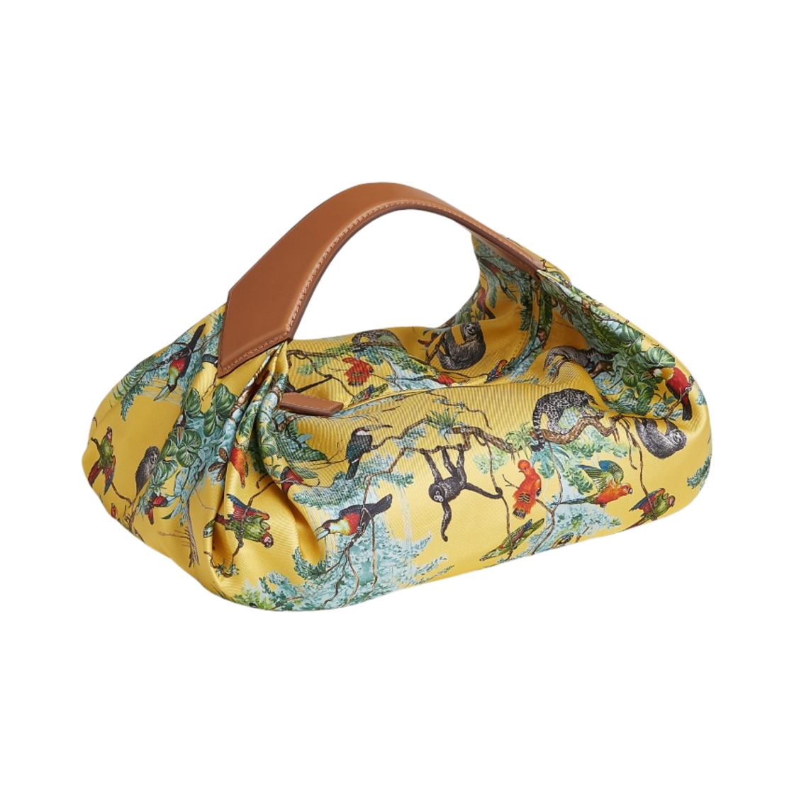(W) Hermes Balusoie Bag Printed Hunter Cowhide & Palladium Jaune De Naples Nature
